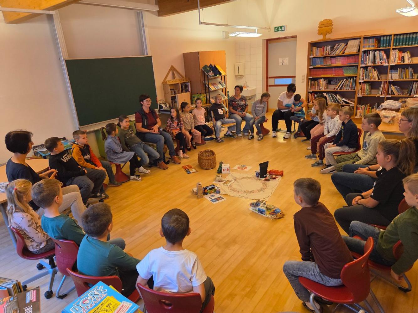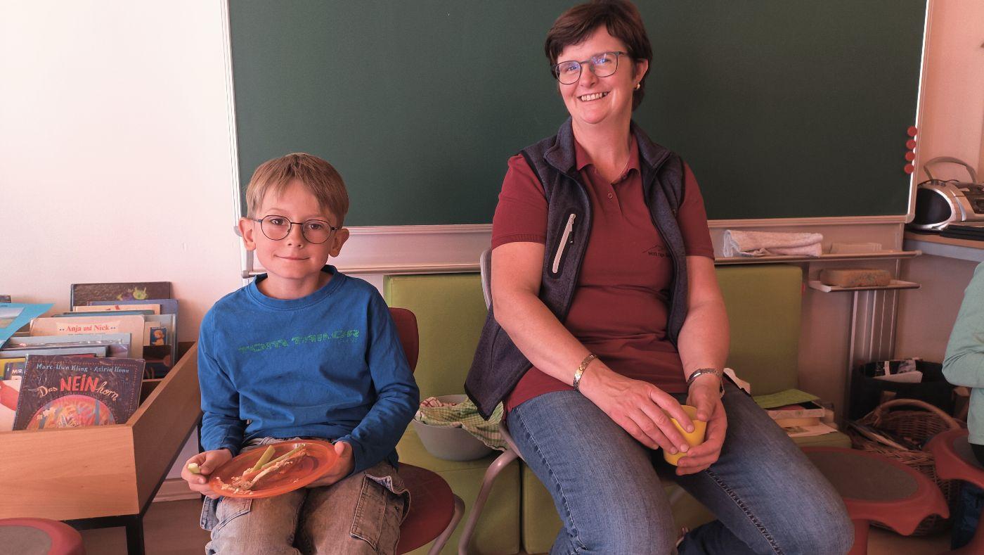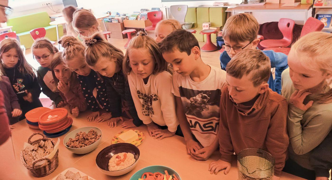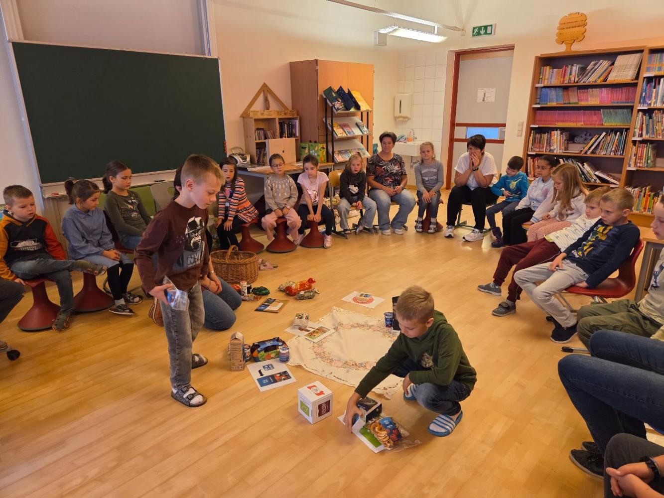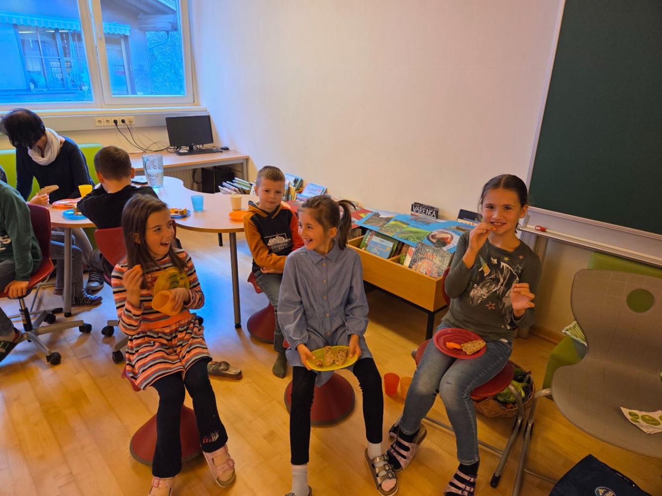Die Ortsbäuerinnen erklärten den Kindern, wie man gesunde Lebensmittel anhand der Gütesiegel erkennt. Sie sprachen über die Ernährungspyramide und ließen die Kinder die Lebensmittel im einem Spiel ordnen nach Gesundheitsfaktor. Zum Schluss gab es noch eine köstliche Jause mit selbstgebackenem Brot, Aufstrichen, Gemüsesticks, Müslikeksen und gesunden Kuchen.