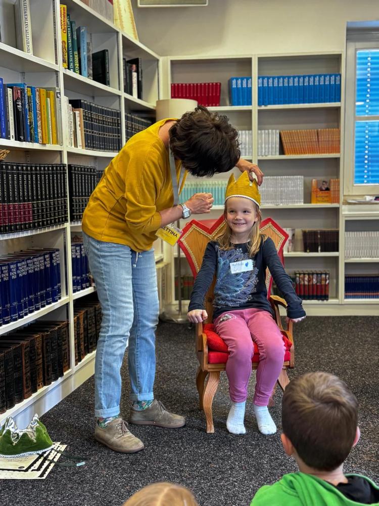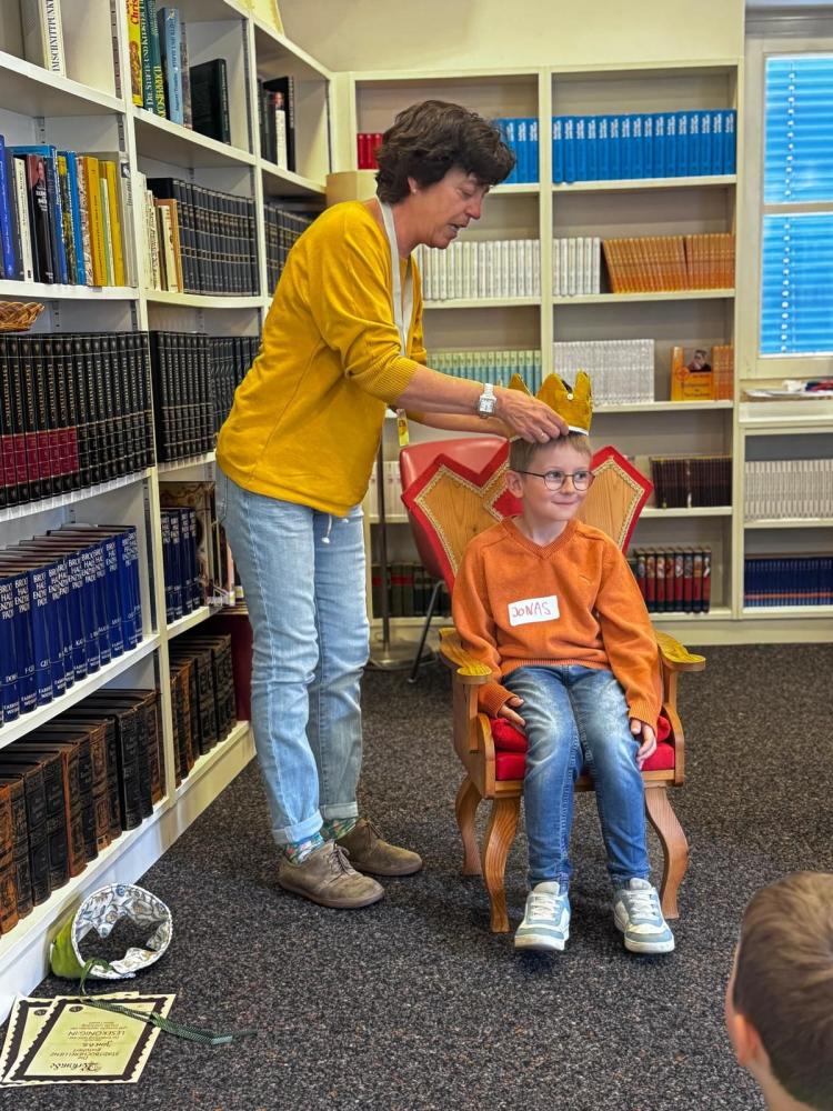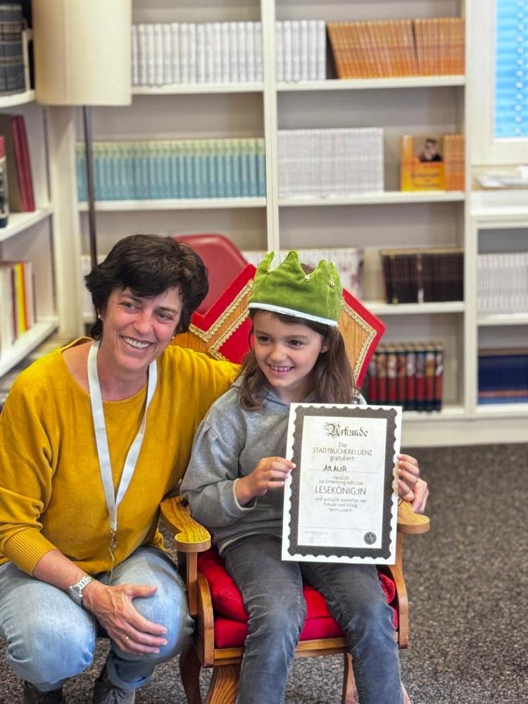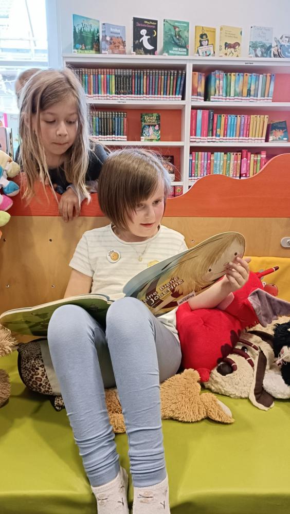 Vor Kurzem besuchte die 1b Klasse im Rahmen ihres QMS-Klassenthemas "Kinderbücher" die Stadtbücherei Lienz. Nach einer feinen Busfahrt wurde die Klasse von der Büchereimitarbeiterin Bettina Rainer herzlich begrüßt. Sie las aus dem Kinderbuch "Oje, ein Buch" vor und krönte uns zu Lesekönigen und Leseköniginnen. Im Anschluss gab es eine kleine Jause mit einem Gießkannensaft und Pixi-Bücher mit einer leckeren Nascherei als Geschenk. Da noch etwas Zeit blieb, durfte die Kinderabteilung der Stadtbücherei durchstöbert werden. Es war ein unvergesslicher und ganz feiner Ausflug. Herzlichen Dank an das Bücherei - Team!