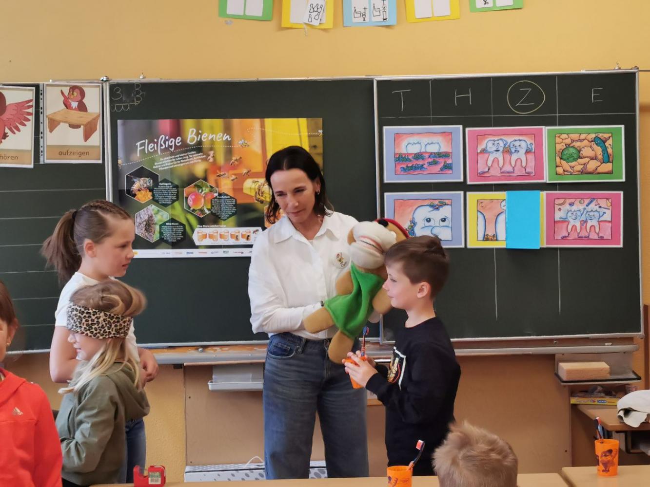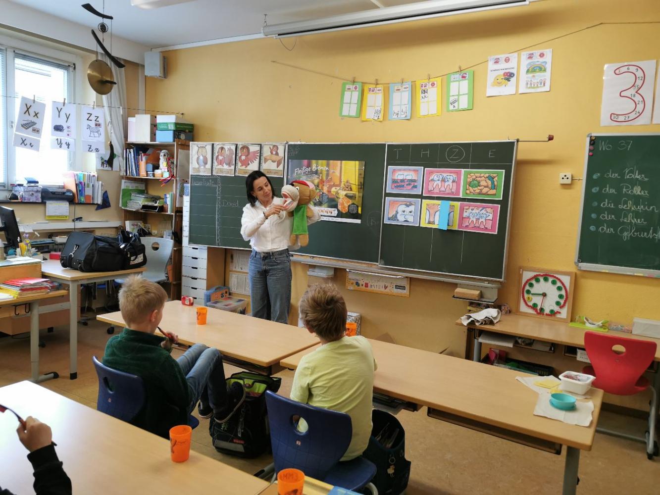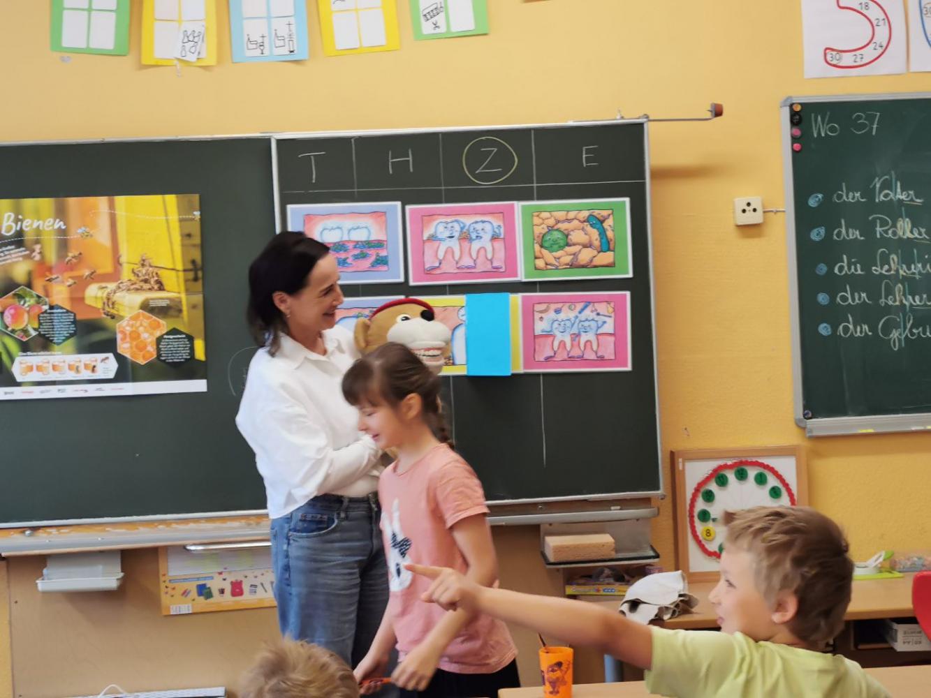 Billi Bürstl hilft beim Zähneputzen von Sigrun Haidenberger 12. Juni 2025 3a „Zahngesundheit“ ist auch immer interessant und wichtig. Das Zähneputzen wird wiederholt und das Bussl vom Willi Bürstl ist natürlich der krönende Abschluss – wenn auch etwas feucht….