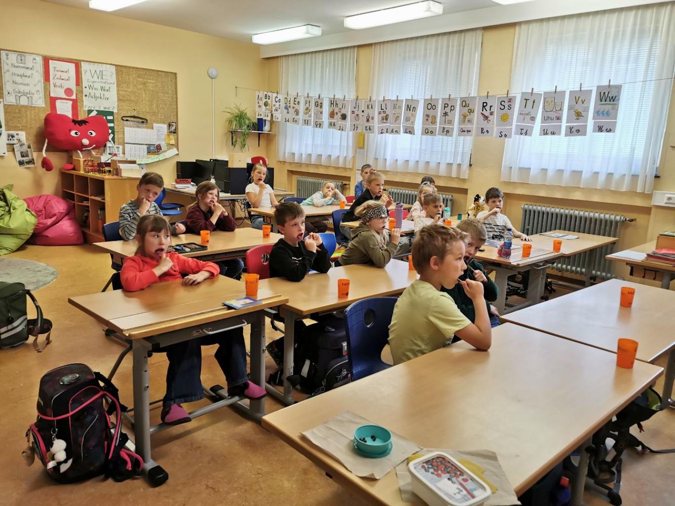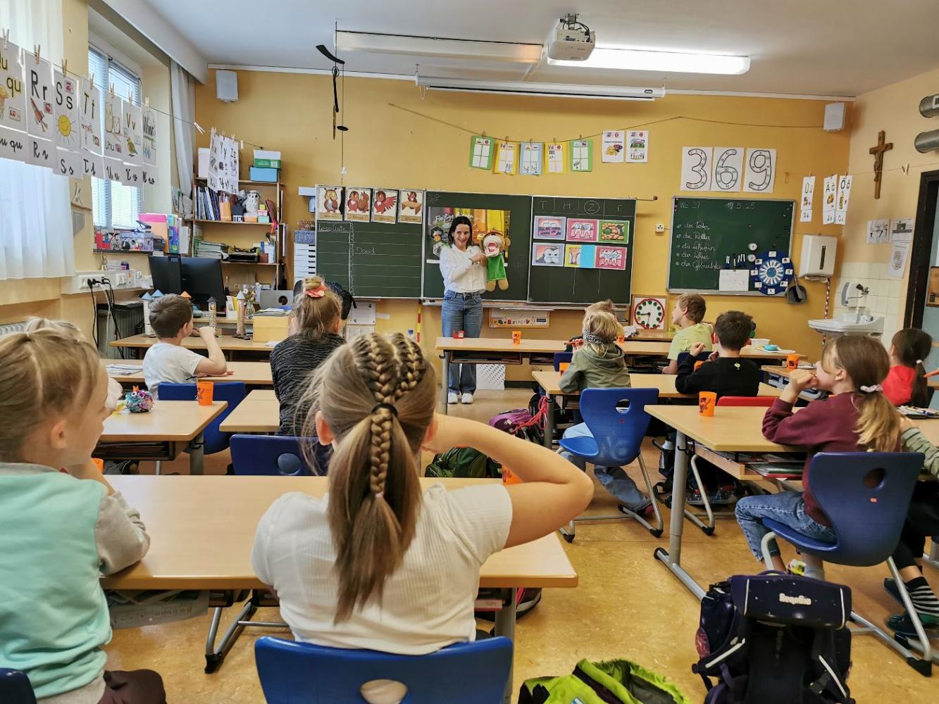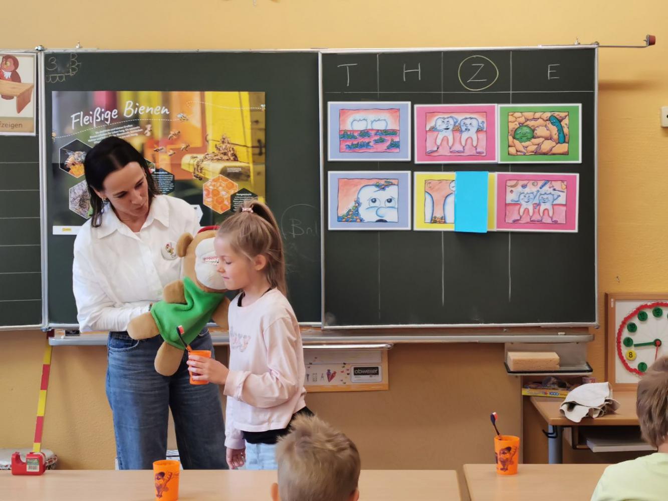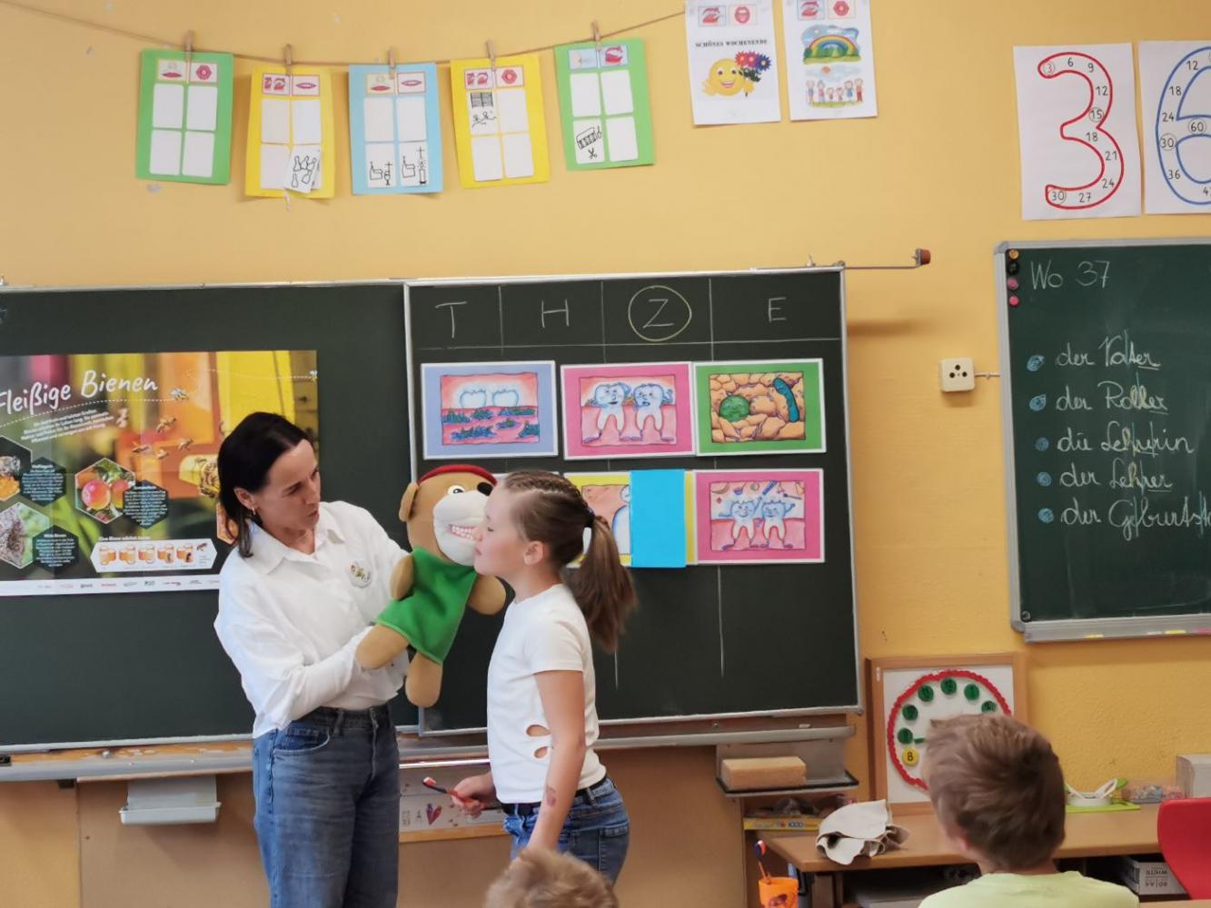 Billi Bürstl hilft beim Zähneputzen von Sigrun Haidenberger 12. Juni 2025 3a „Zahngesundheit“ ist auch immer interessant und wichtig. Das Zähneputzen wird wiederholt und das Bussl vom Willi Bürstl ist natürlich der krönende Abschluss – wenn auch etwas feucht….