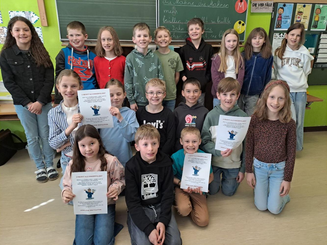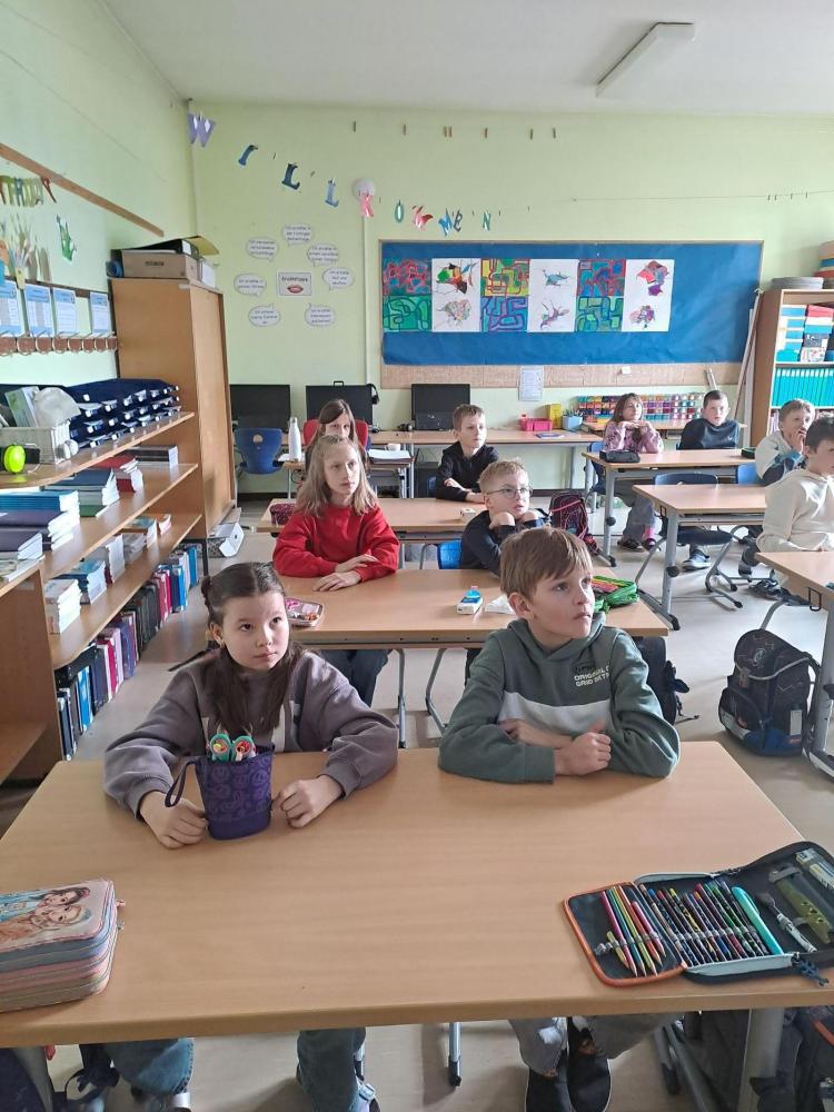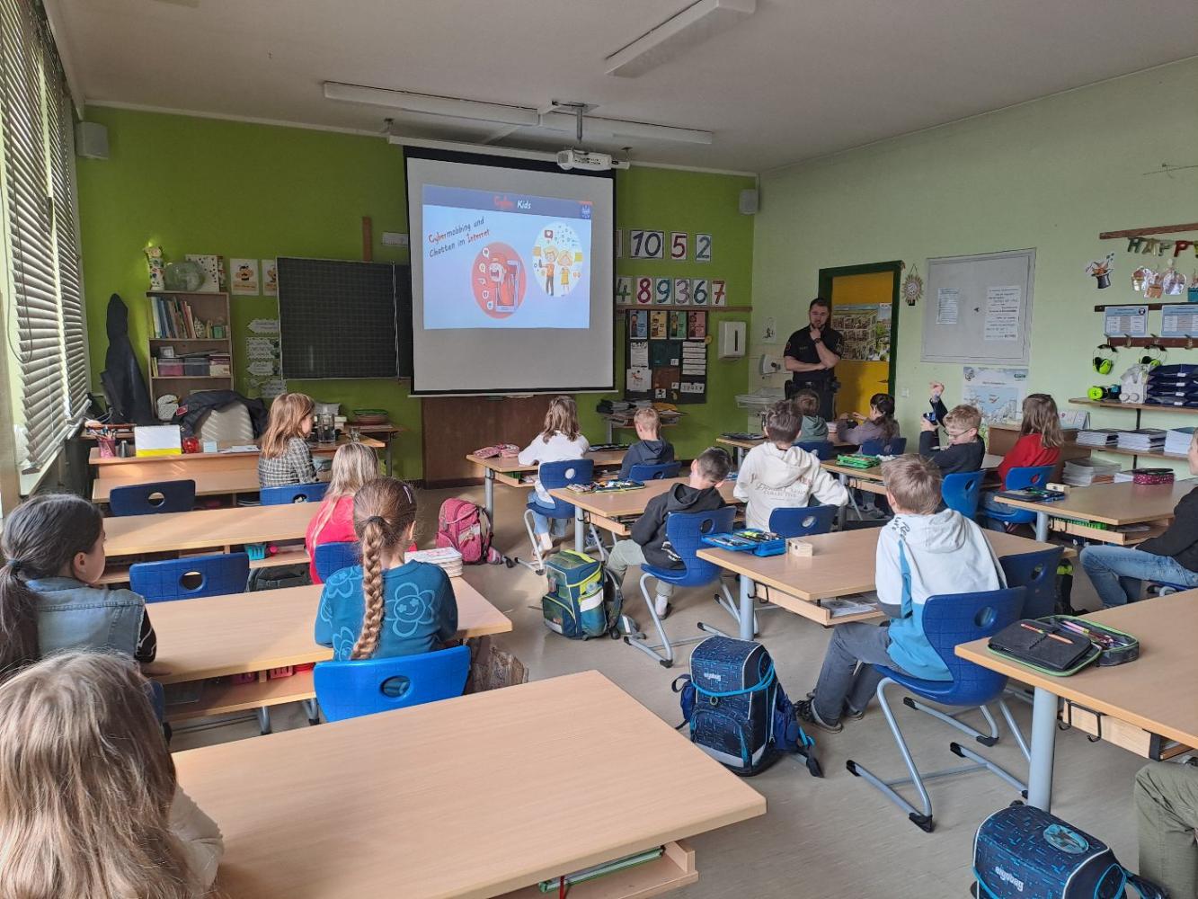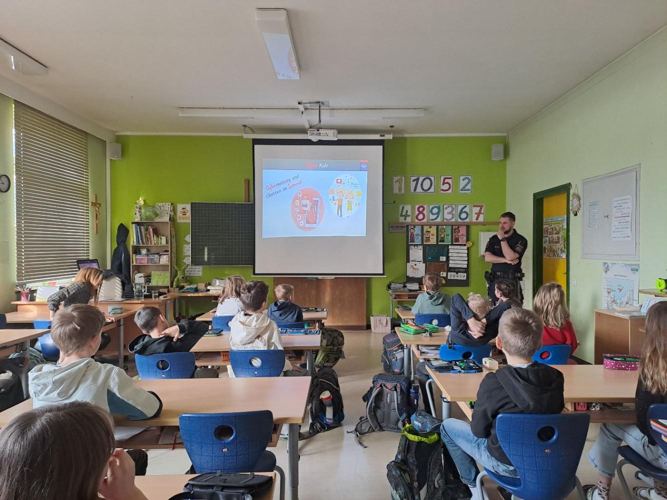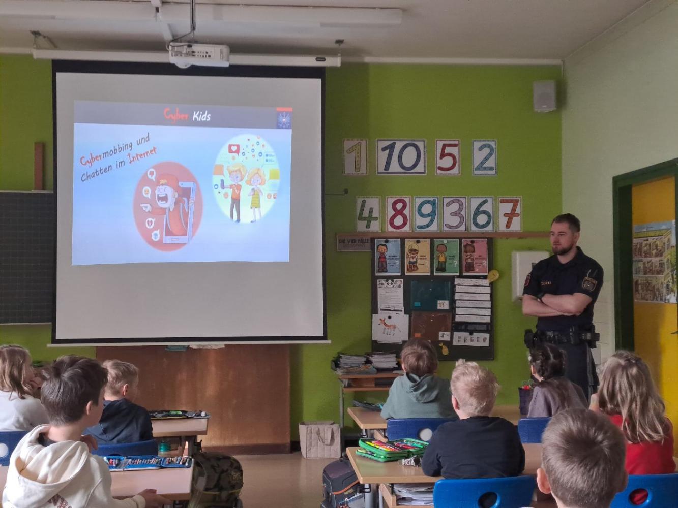 Cyberkids von Sigrun Haidenberger 27. März 2026 4a 4b Die Kinder der 4. Klasse wurden von einem Polizisten über die Gefahren im Internet und beim Benützen von Mobiltelefonen aufgeklärt.