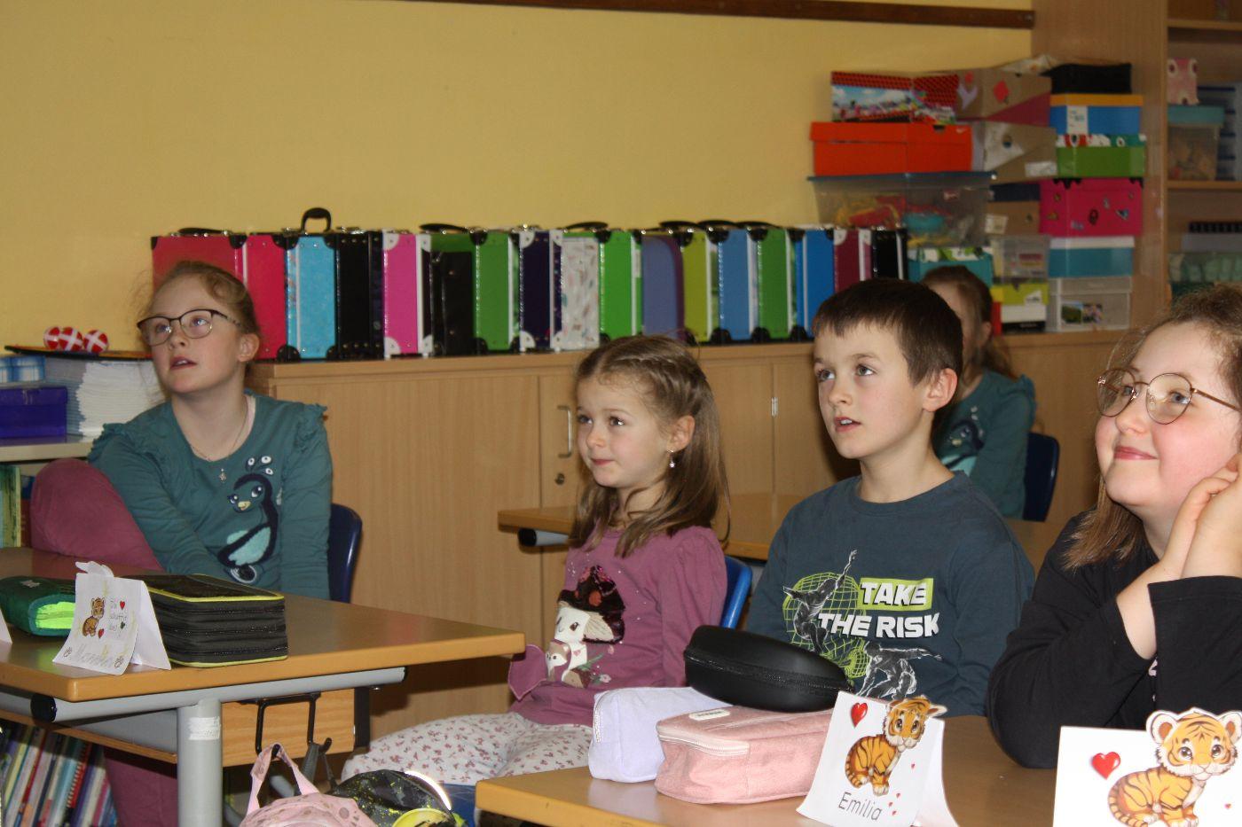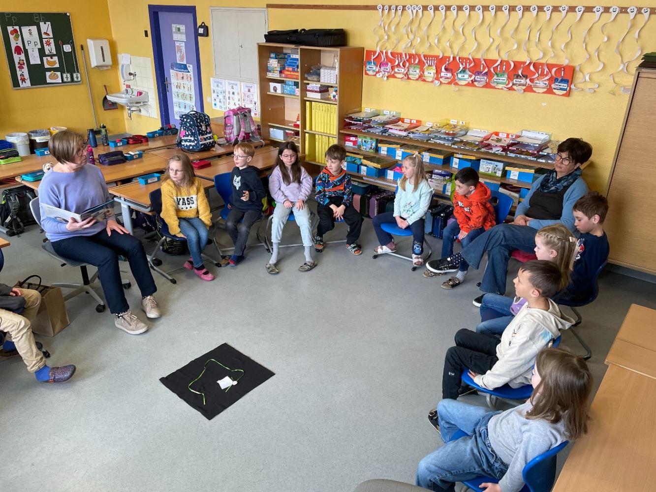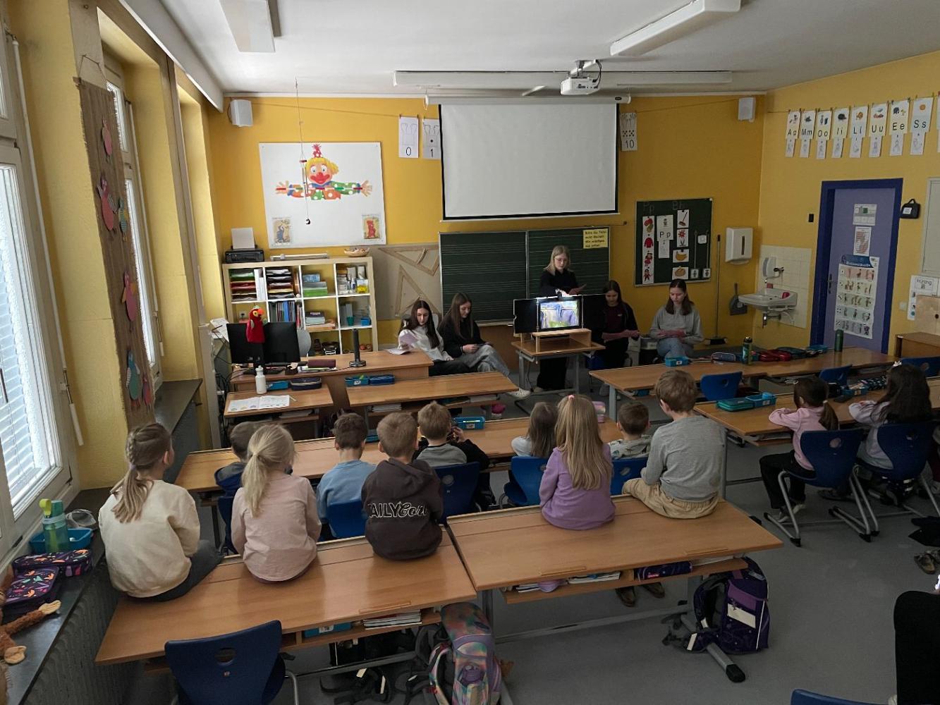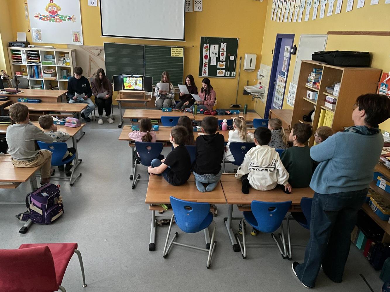 In der 2b lasen die beiden Schulassistentinnen schöne Geschichten vor. Die Kinder mussten gut aufpassen, denn nach jedem Kapitel gab es knifflige Rätselfragen.