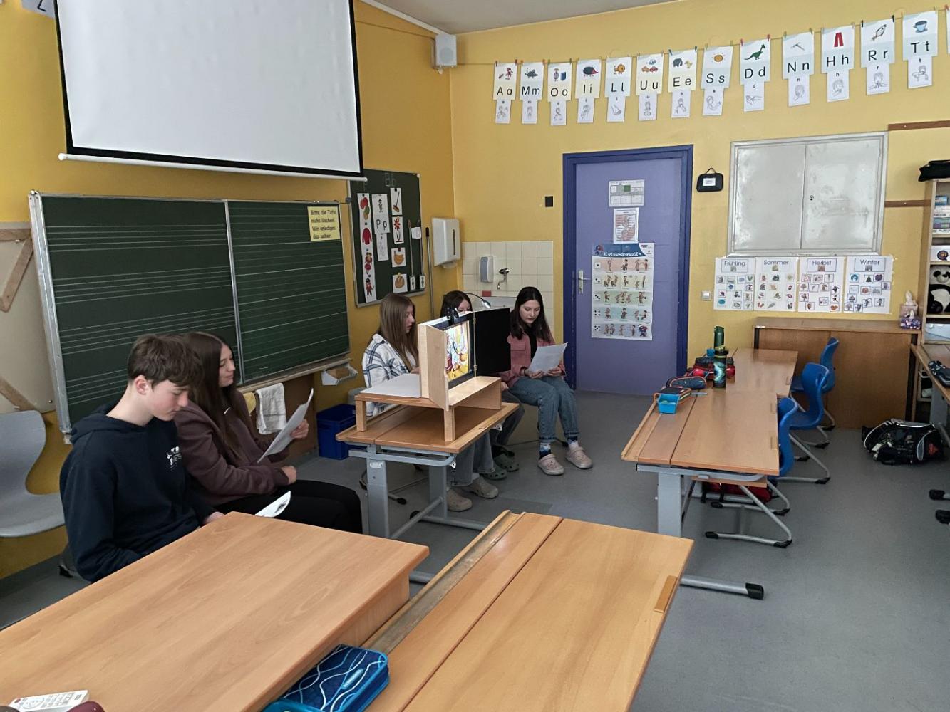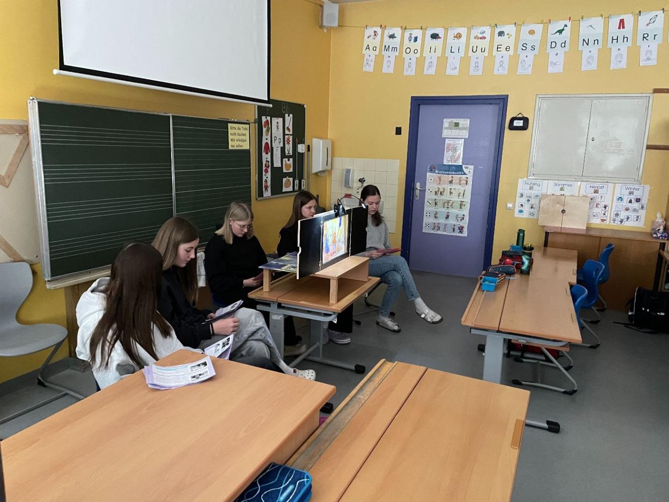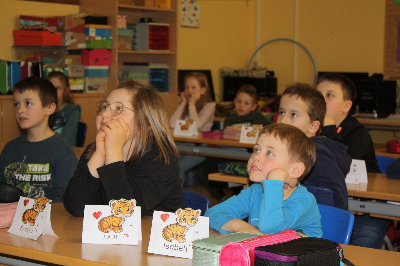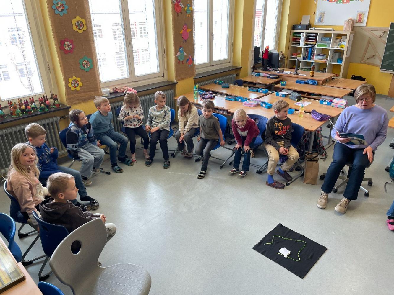 In der 2b lasen die beiden Schulassistentinnen schöne Geschichten vor. Die Kinder mussten gut aufpassen, denn nach jedem Kapitel gab es knifflige Rätselfragen.