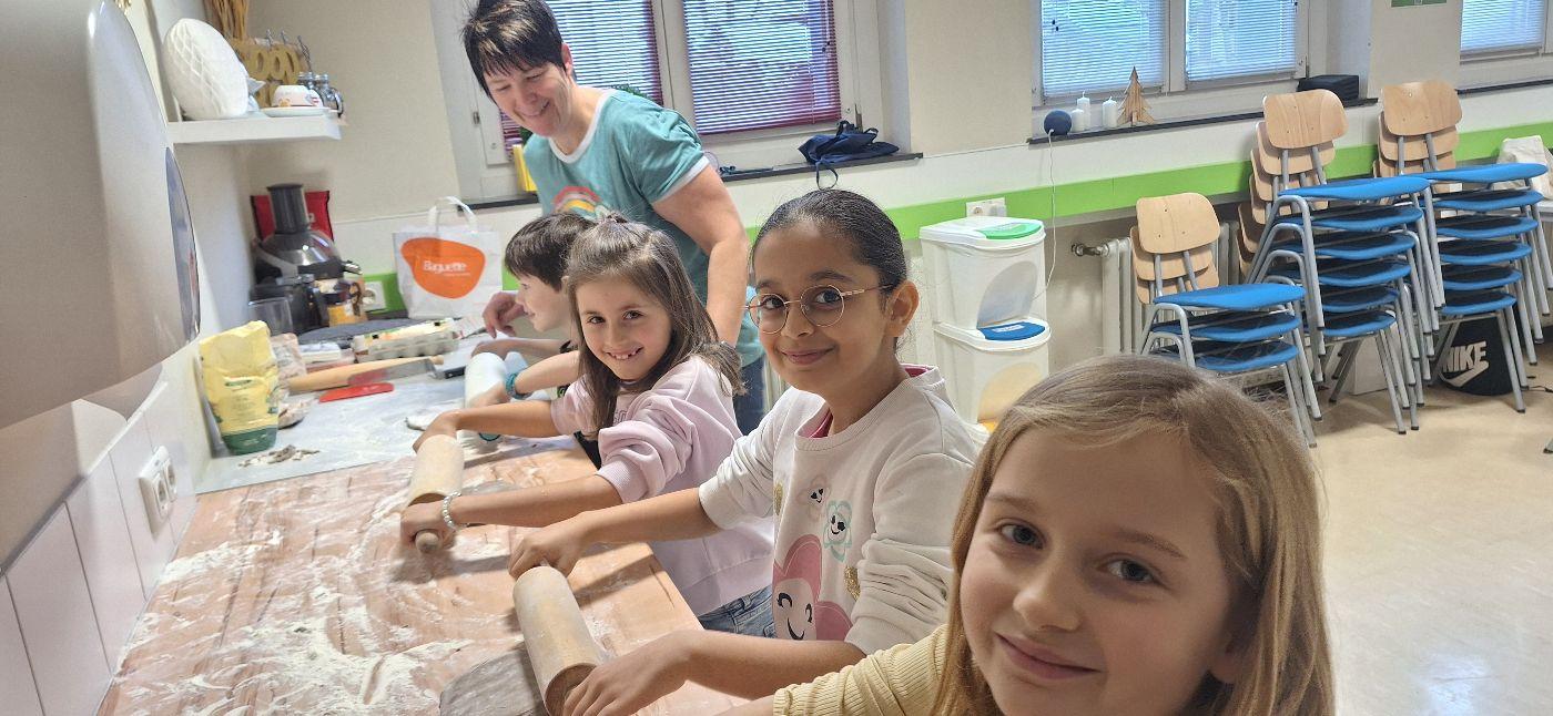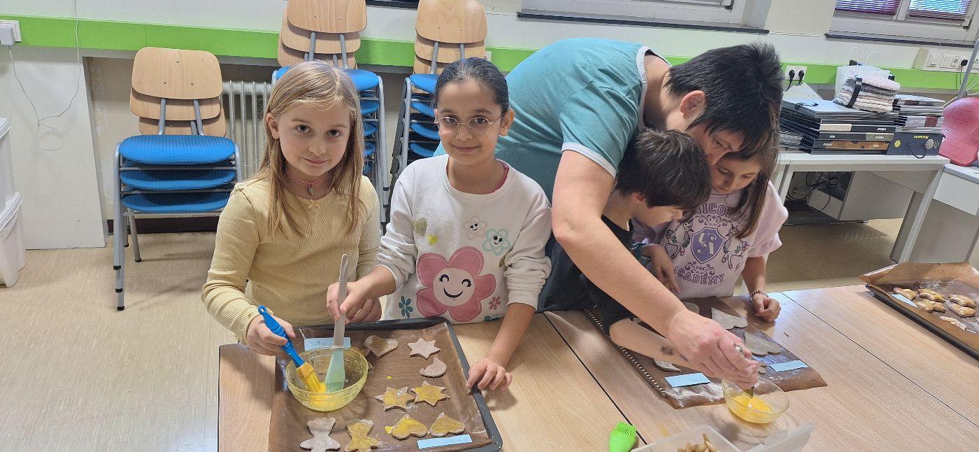 In der Weihnachtsbäckerei von Sigrun Haidenberger 22. Dezember 2025 2b Am Mittwoch durften die Kinder der 2b in der Küche der PTS gemeinsam mit Marlies Mattersberger Kekse backen. Es hat viel Spaß gemacht und die Kekse haben wunderbar geschmeckt.