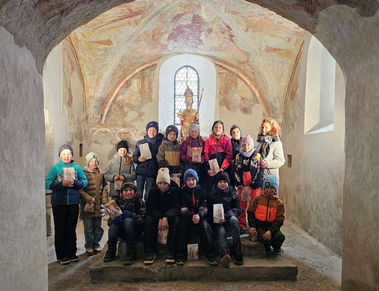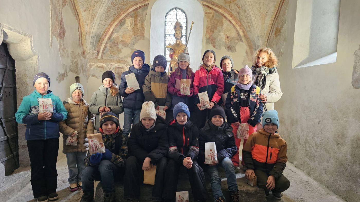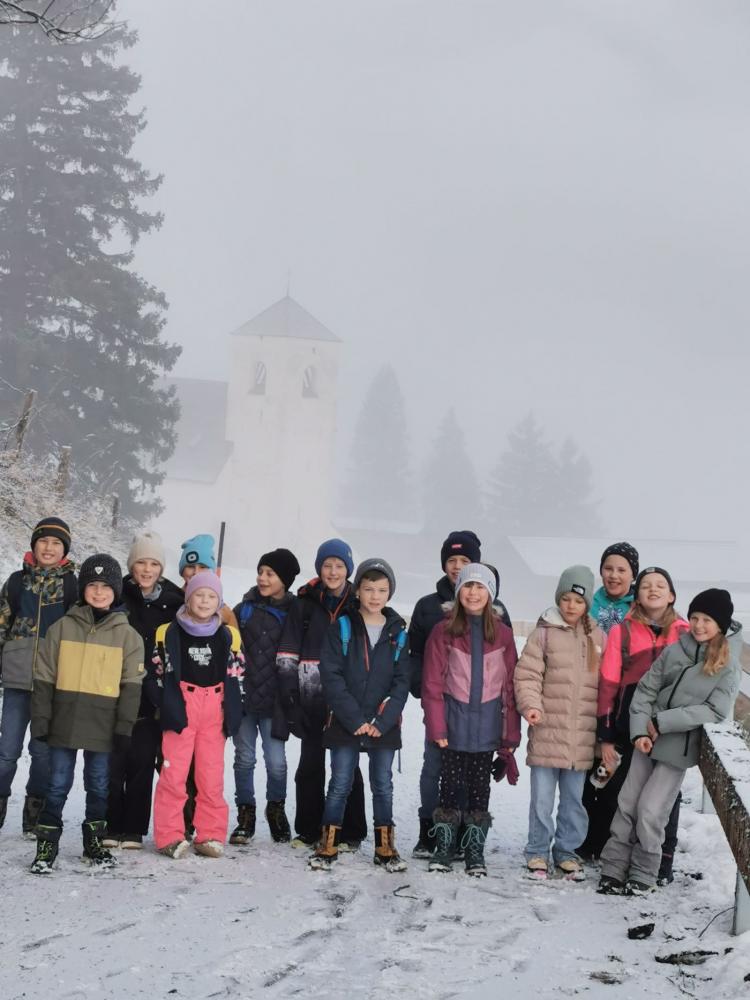 Am Vortag vom Nikolaustag machte die 3a Klasse eine Wanderung zur Nikolauskirche. Wie bestellt, war die Landschaft wunderbar „angezuckert“ mit ein bisschen Schnee.