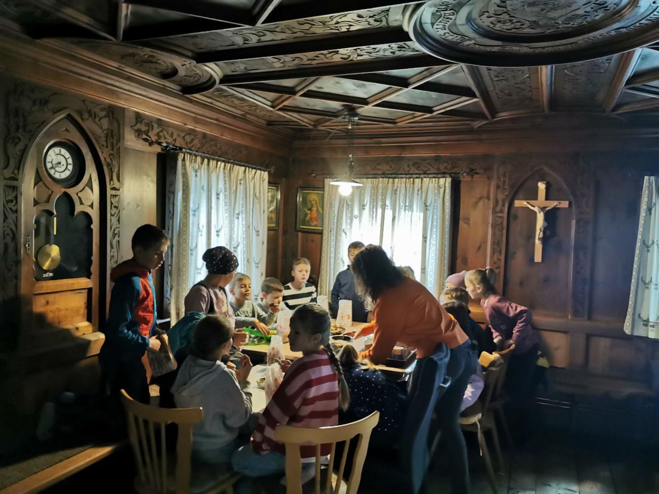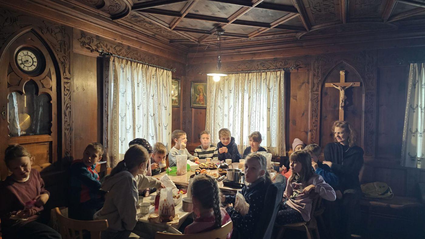 Zum Abschluss durften wir noch in der beeindruckenden Virgil-Rainer-Stube Tee und Kekse genießen. Der berühmte Matreier Bildhauer Virgil Rainer wurde in diesem Haus, in dem die Oma von unserem Felix wohnt, geboren.