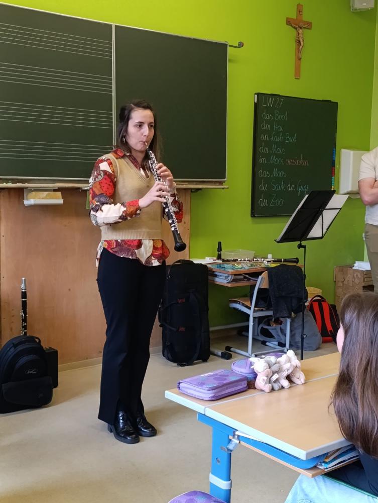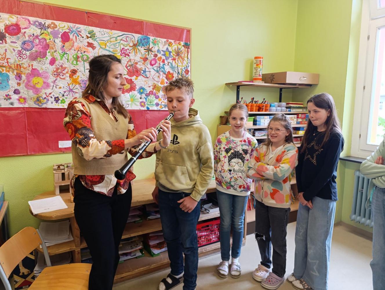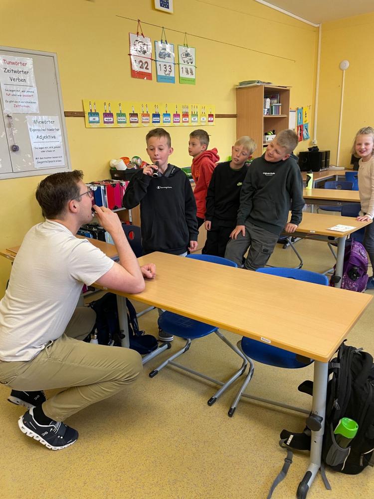 Instrumentenvorstellung in den 4. Klassen von Sigrun Haidenberger 15. Mai 2025 4c 2024/2025 Einige Lehrpersonen der Landesmusikschule kamen zu uns in die Volksschule und stellten den Kindern ihre Instrumente vor. Die Kinder durften diese auch ausprobieren.