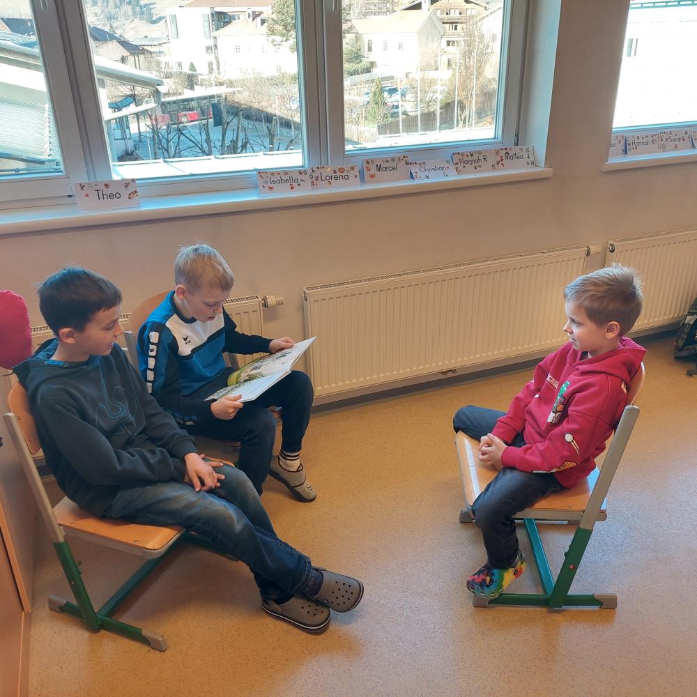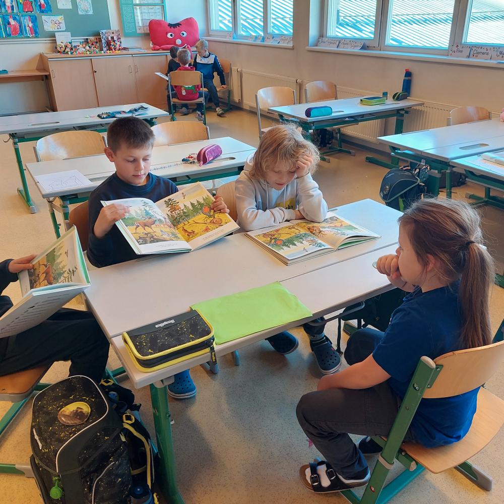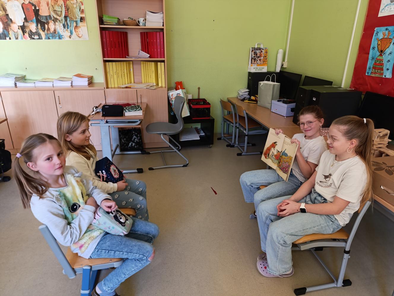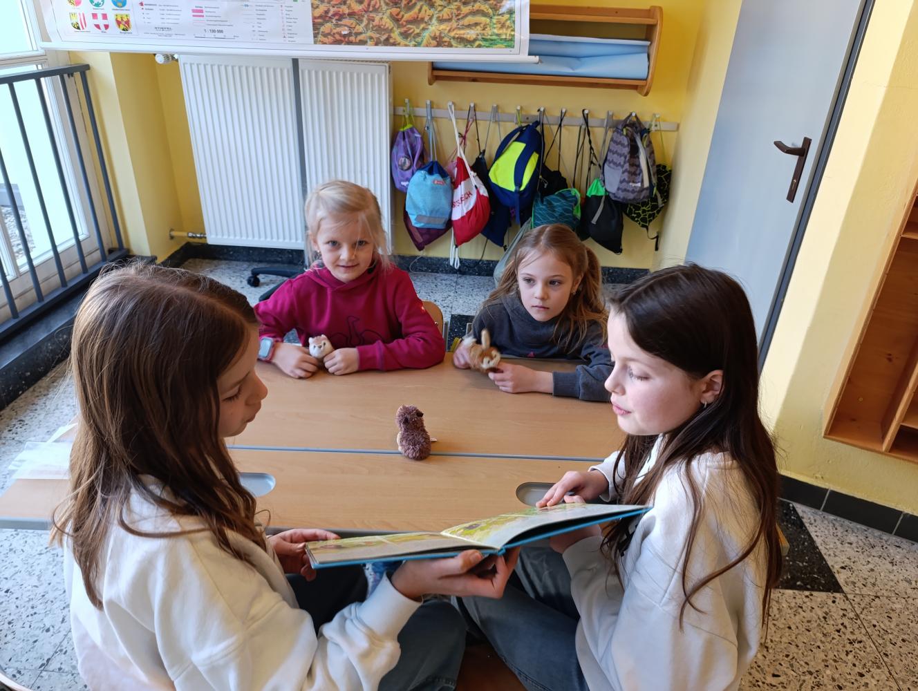 Die Kinder der 4c Klasse haben sich im November und Dezember in Kleingruppen zusammengetan und passende Bücher zum Vorlesen für die Kinder der 1c ausgewählt. Sie haben das laute Vorlesen fleißig geübt und zusätzlich noch eine kleine Aufgabe für ihre Zuhörer überlegt: Rätsel, Memory, 1-2 oder 3!...