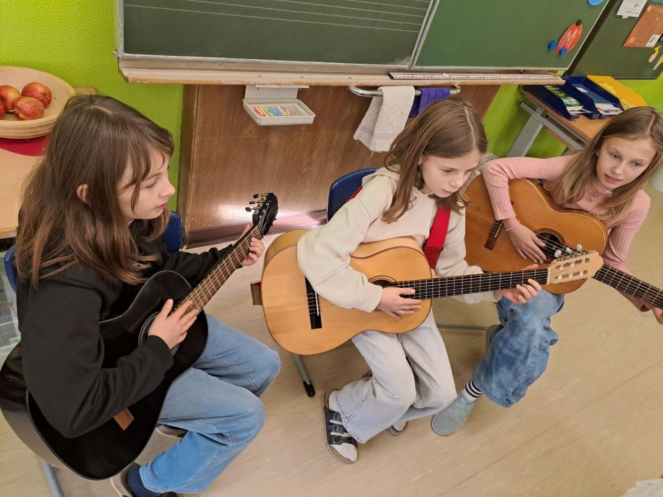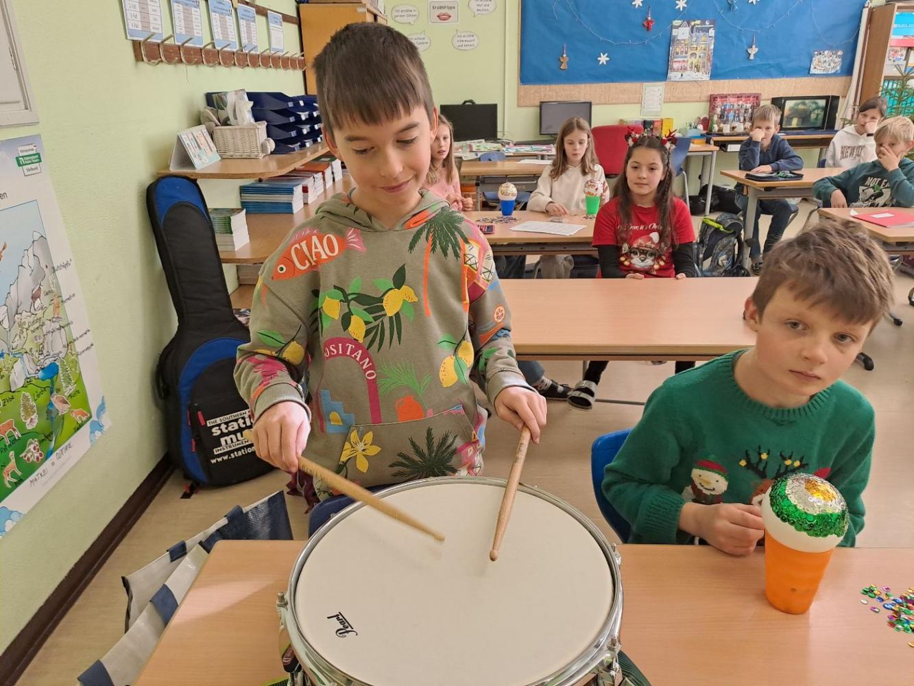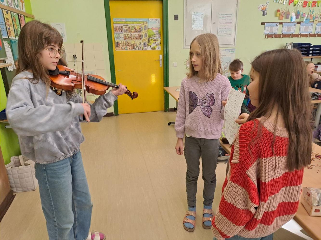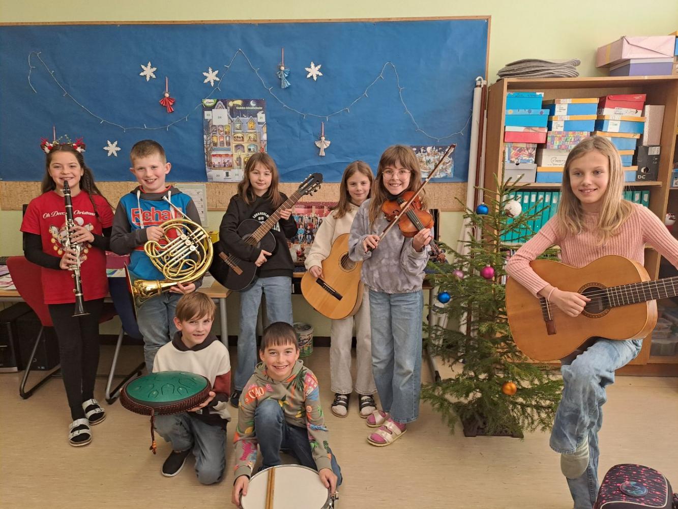 Die Kinder stellten mit großer Begeisterung ihre Instrumente vor und gaben spannende Einblicke in deren Besonderheiten. Dabei erklärten sie, wie die Instrumente klingen und gespielt werden. Anschließend wurde musiziert und gesungen. Mit viel Freude zeigten sie, was sie gelernt hatten, und sorgten für eine festliche Stimmung in der 4b Klasse.