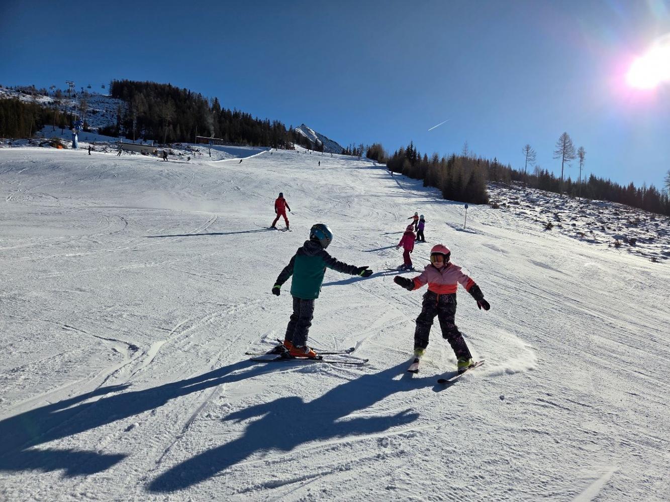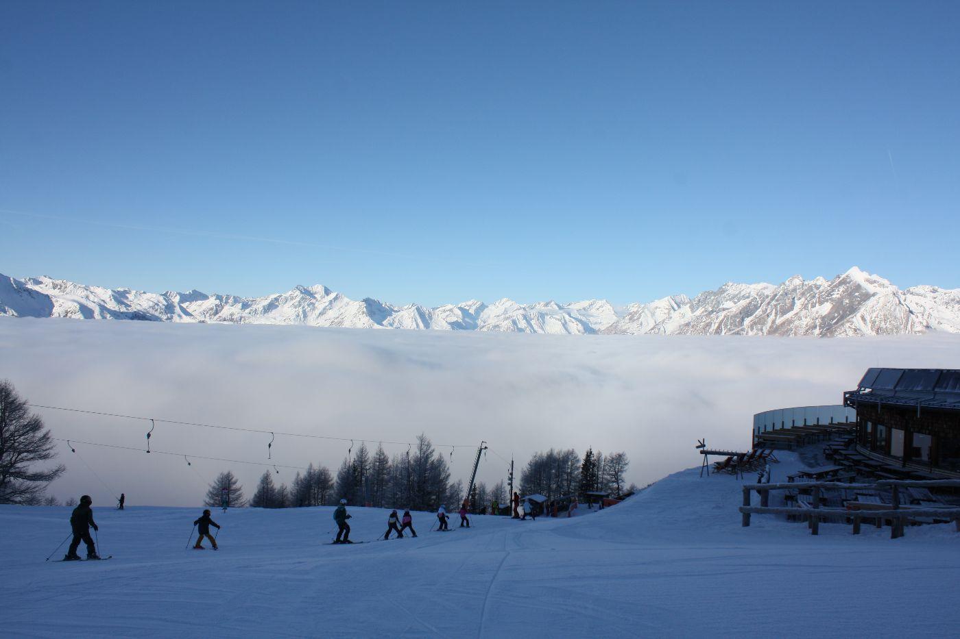 Am ersten Schikurstag der 2. und 3. Klassen lag noch Hochnebel über dem Tal. Als wir mit den Gondeln in Nähe der Bergstation die Nebeldecke durchbrachen, staunten die Kinder, wie wunderbar das aussah, blauer Himmel, Sonne strahlte über dem Nebelmeer, einfach schön! An den nächsten beiden Tagen war der Nebel verschwunden und wir hatten an allen drei Tagen beste Pisten, Sonnenschein und eine schöne Zeit beim Schifahren.
