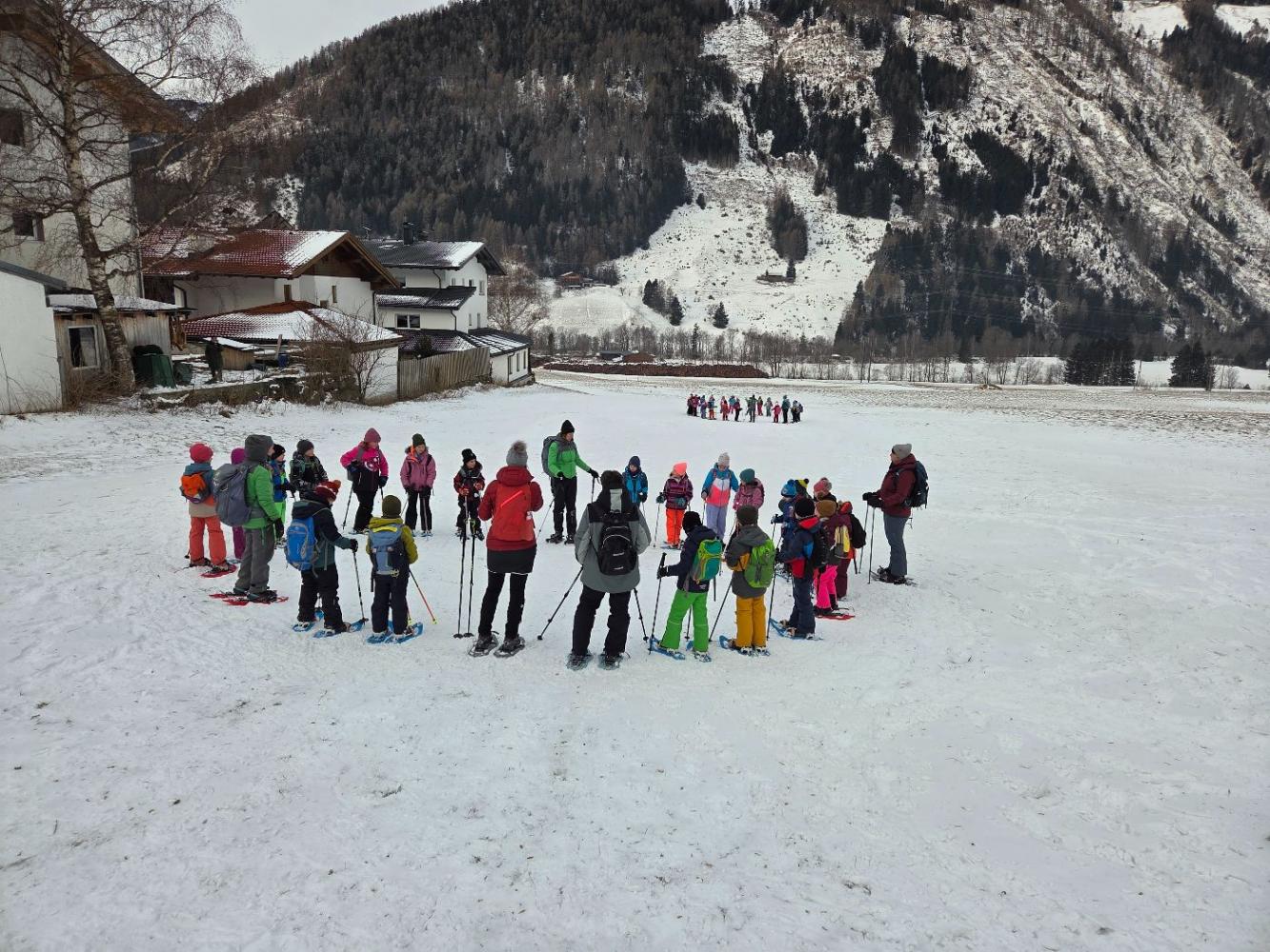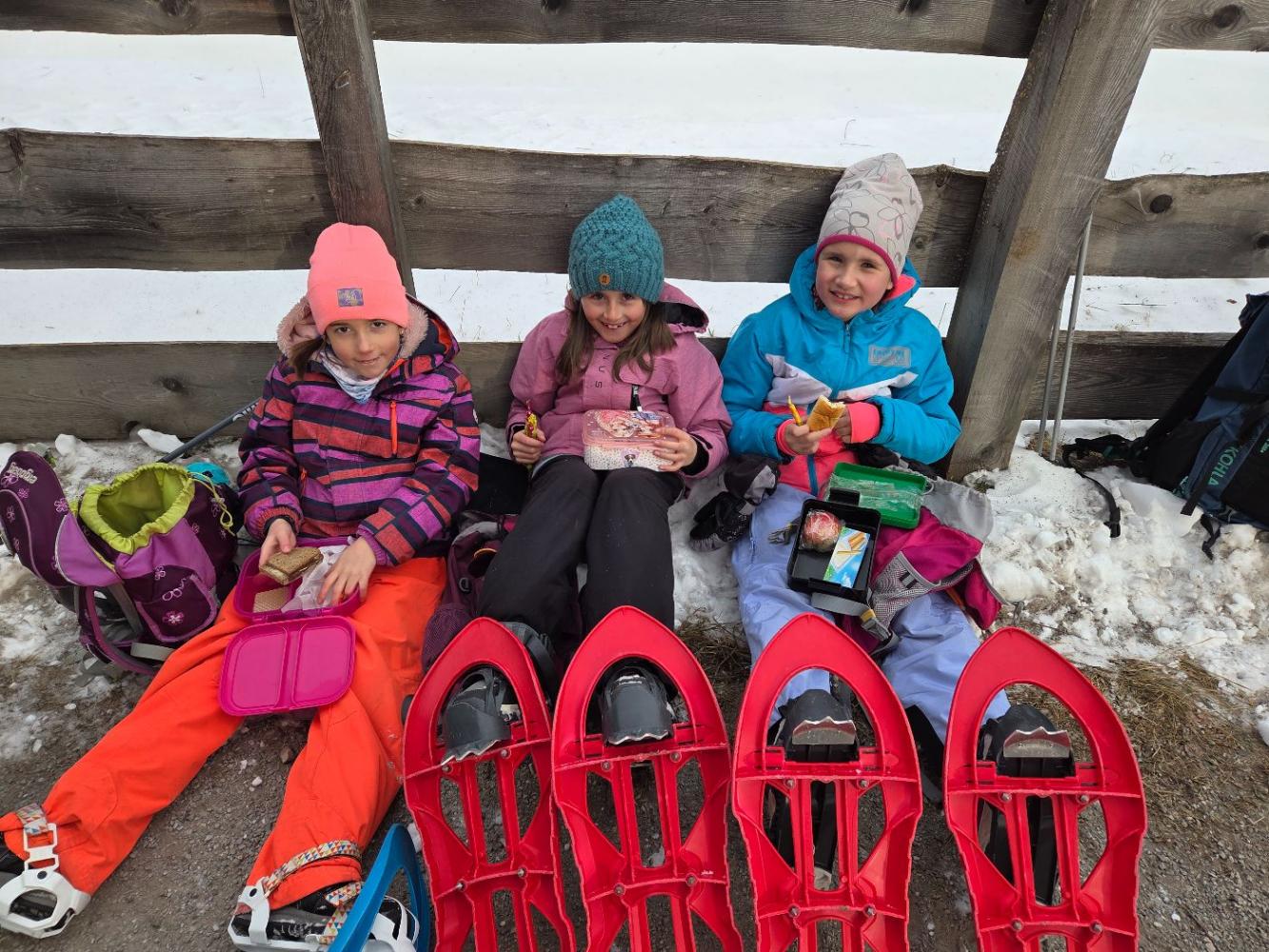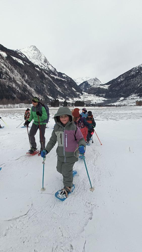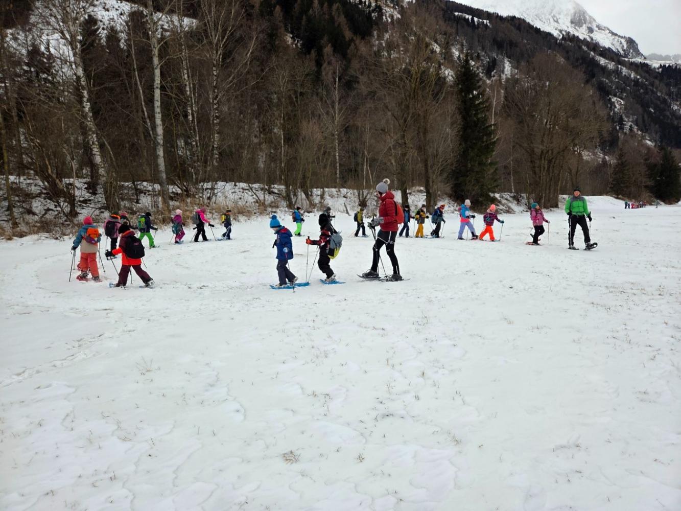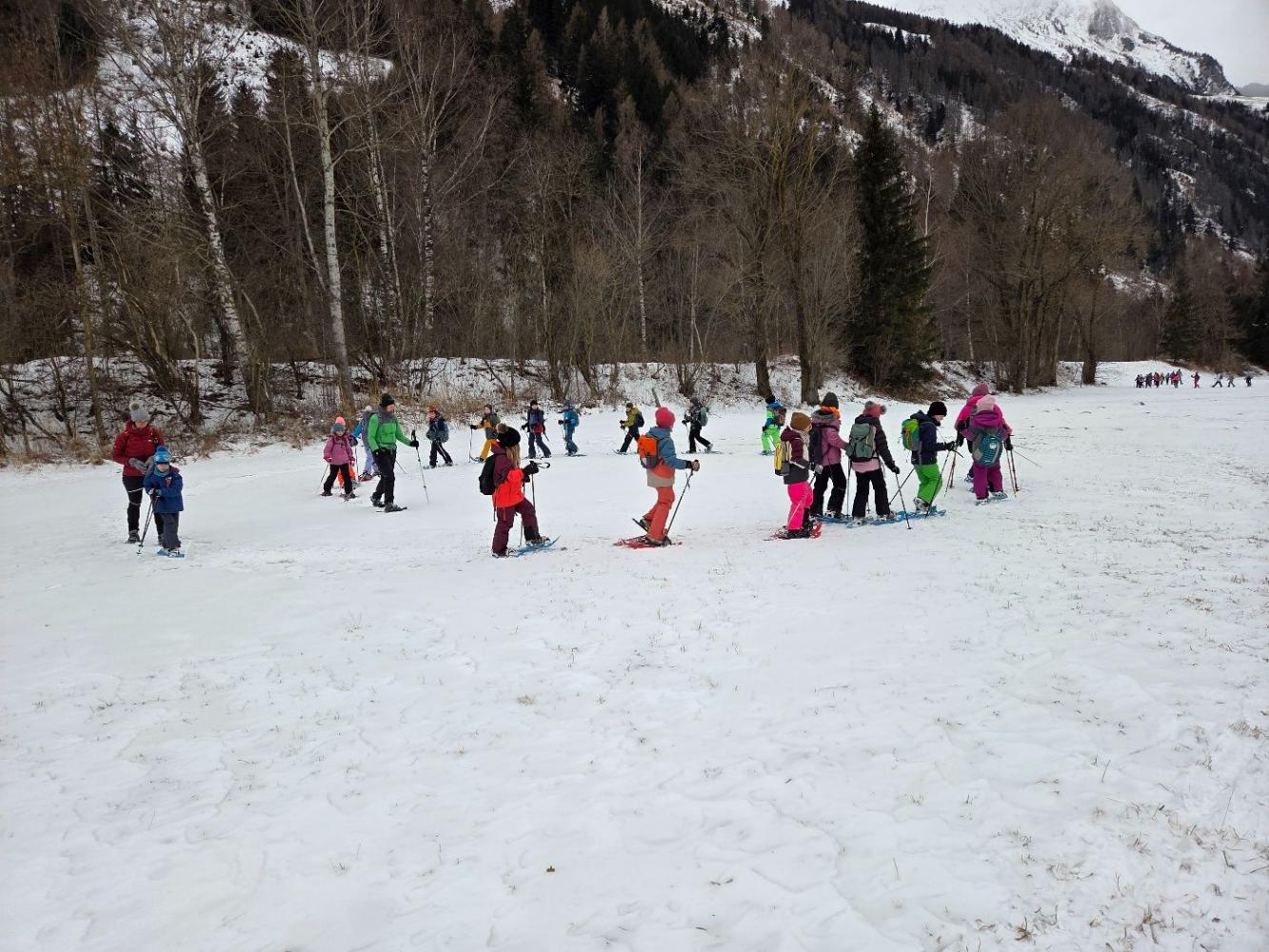 Die Kinder der zweiten Klassen durften mit den Nationalparkrangerinnen Carola, Maria und Sophie das Schneeschuhwandern kennen lernen. Leider war am Wochenende der Wind sehr stark und hat den Schnee zum Teil verweht. Carola, Maria und Sophie wussten jedoch noch gute Plätze und starteten mit uns beim Kreuzbichel eine kleine Wanderung über Schneewege. Die Kinder lernten Hasenspuren kennen und machten auch selbst welche in den Schnee. Beim Damm machten wir eine Rast und danach auch einige lustige Spiele: "Fuchs und Hase", "Eichhörchnchenspiel"...