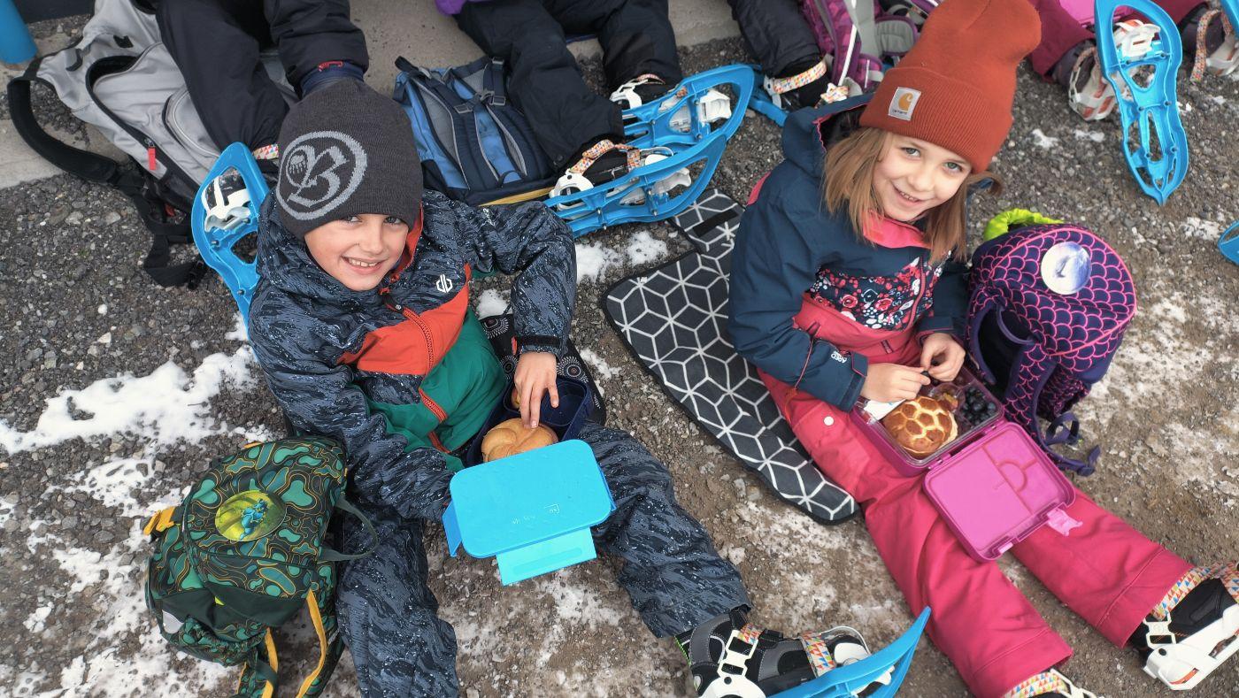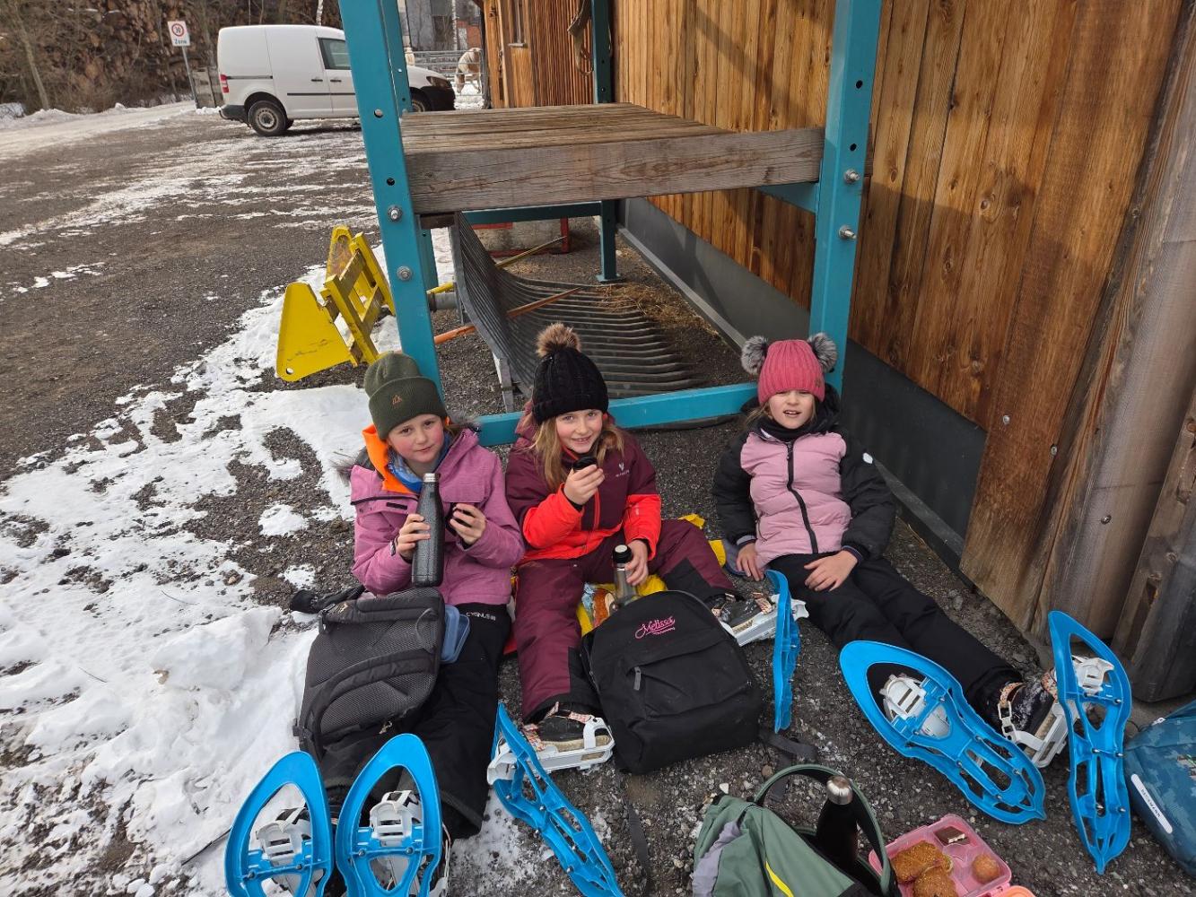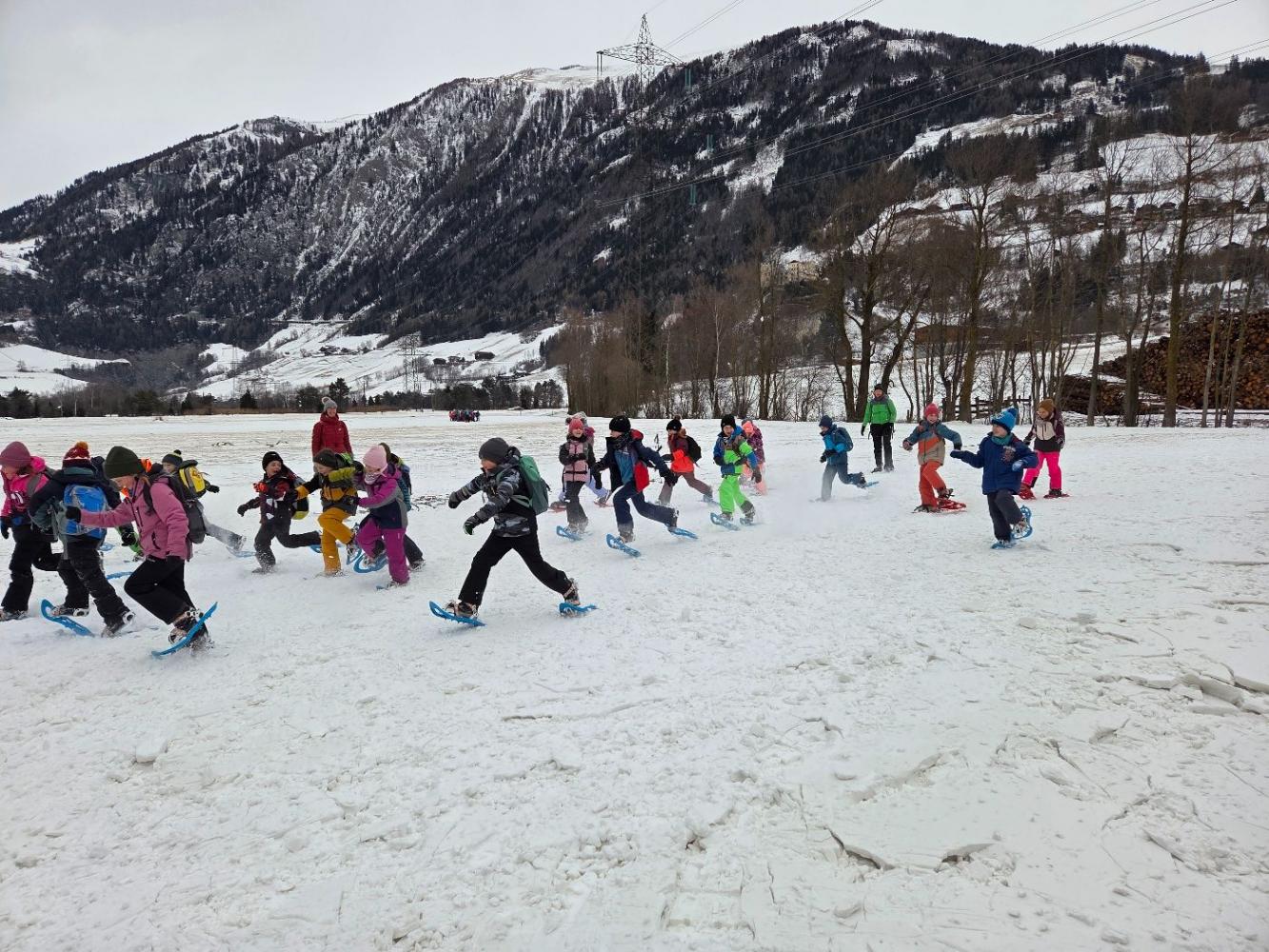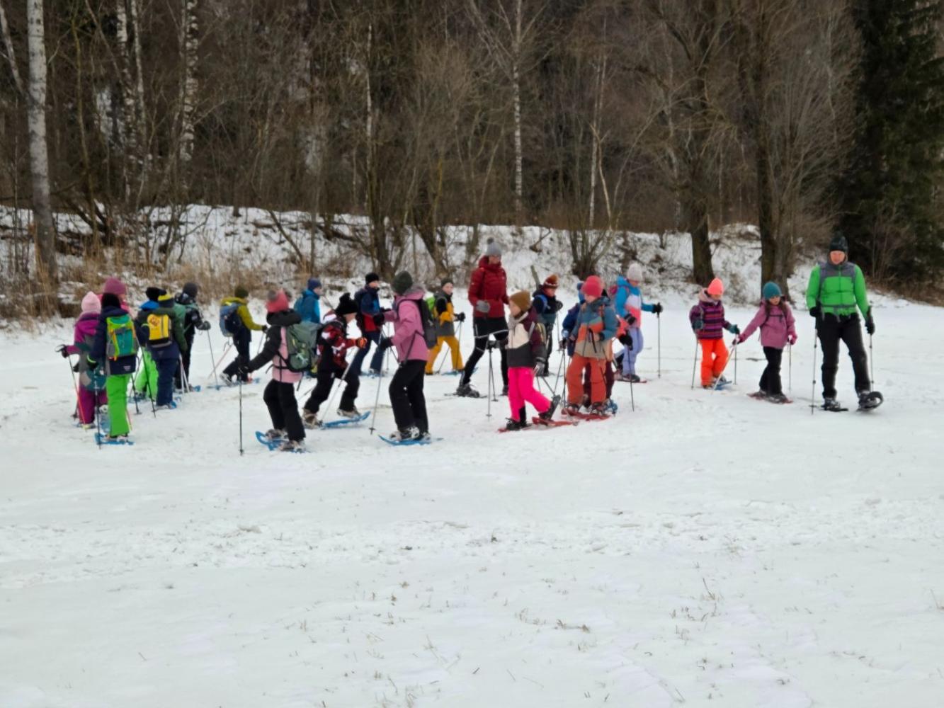 Die Kinder der zweiten Klassen durften mit den Nationalparkrangerinnen Carola, Maria und Sophie das Schneeschuhwandern kennen lernen. Leider war am Wochenende der Wind sehr stark und hat den Schnee zum Teil verweht. Carola, Maria und Sophie wussten jedoch noch gute Plätze und starteten mit uns beim Kreuzbichel eine kleine Wanderung über Schneewege. Die Kinder lernten Hasenspuren kennen und machten auch selbst welche in den Schnee. Beim Damm machten wir eine Rast und danach auch einige lustige Spiele: "Fuchs und Hase", "Eichhörchnchenspiel"...