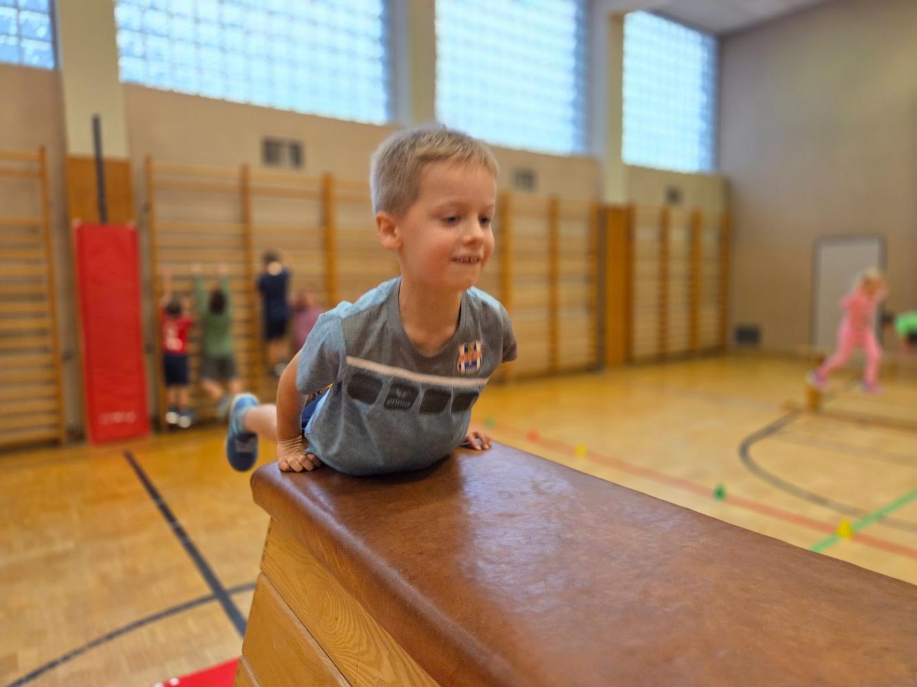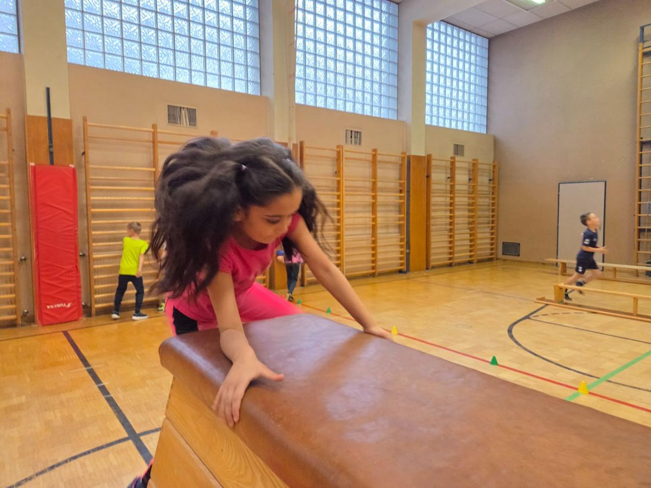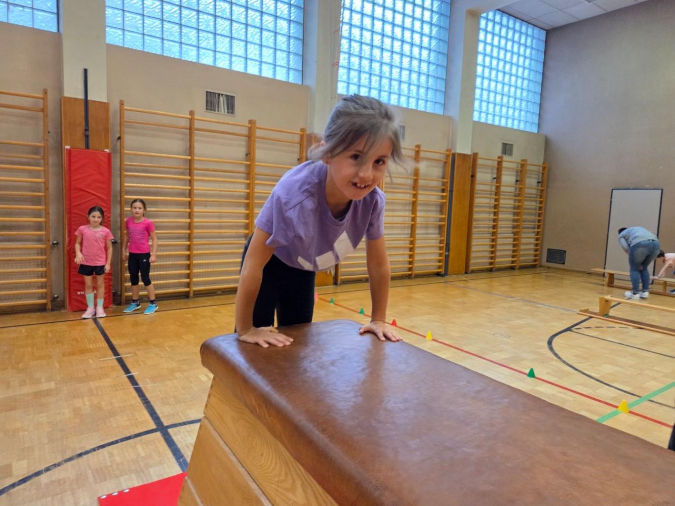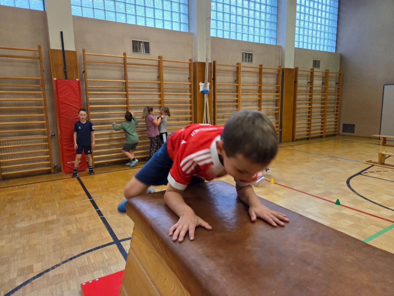 Turnen mit Rebekka Egger von Andrea Lankmair 11. November 2025 2b Die Kinder durften wieder zwei spannende Turneinheiten mit Rebekka Egger im Turnsaal verbringen.