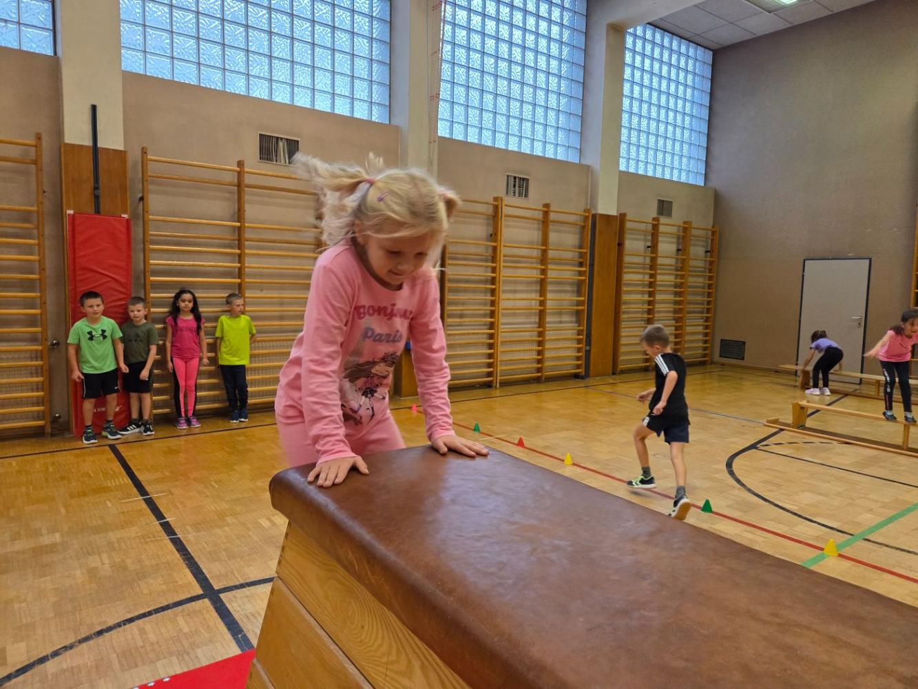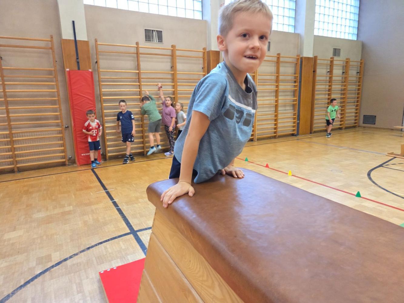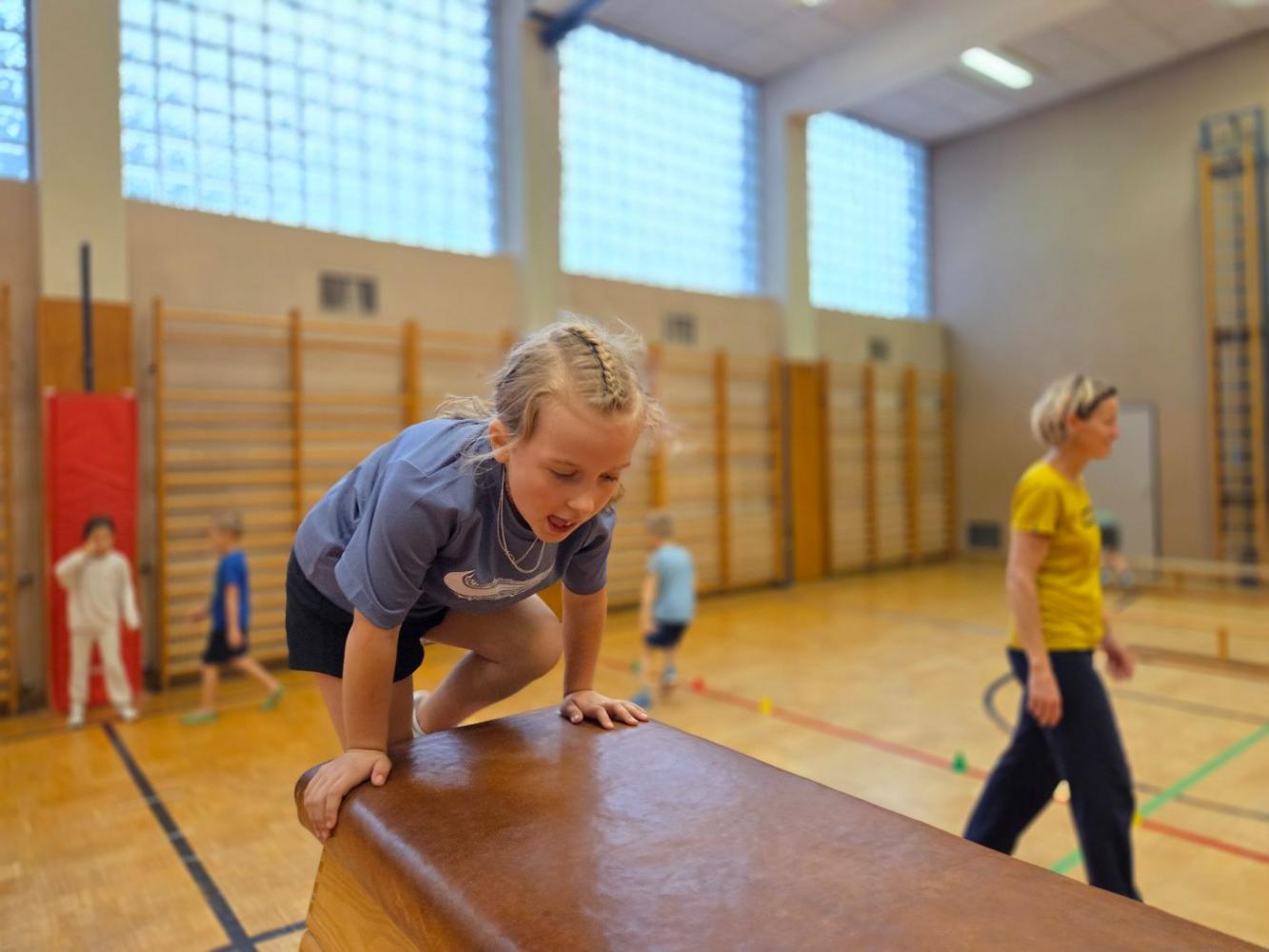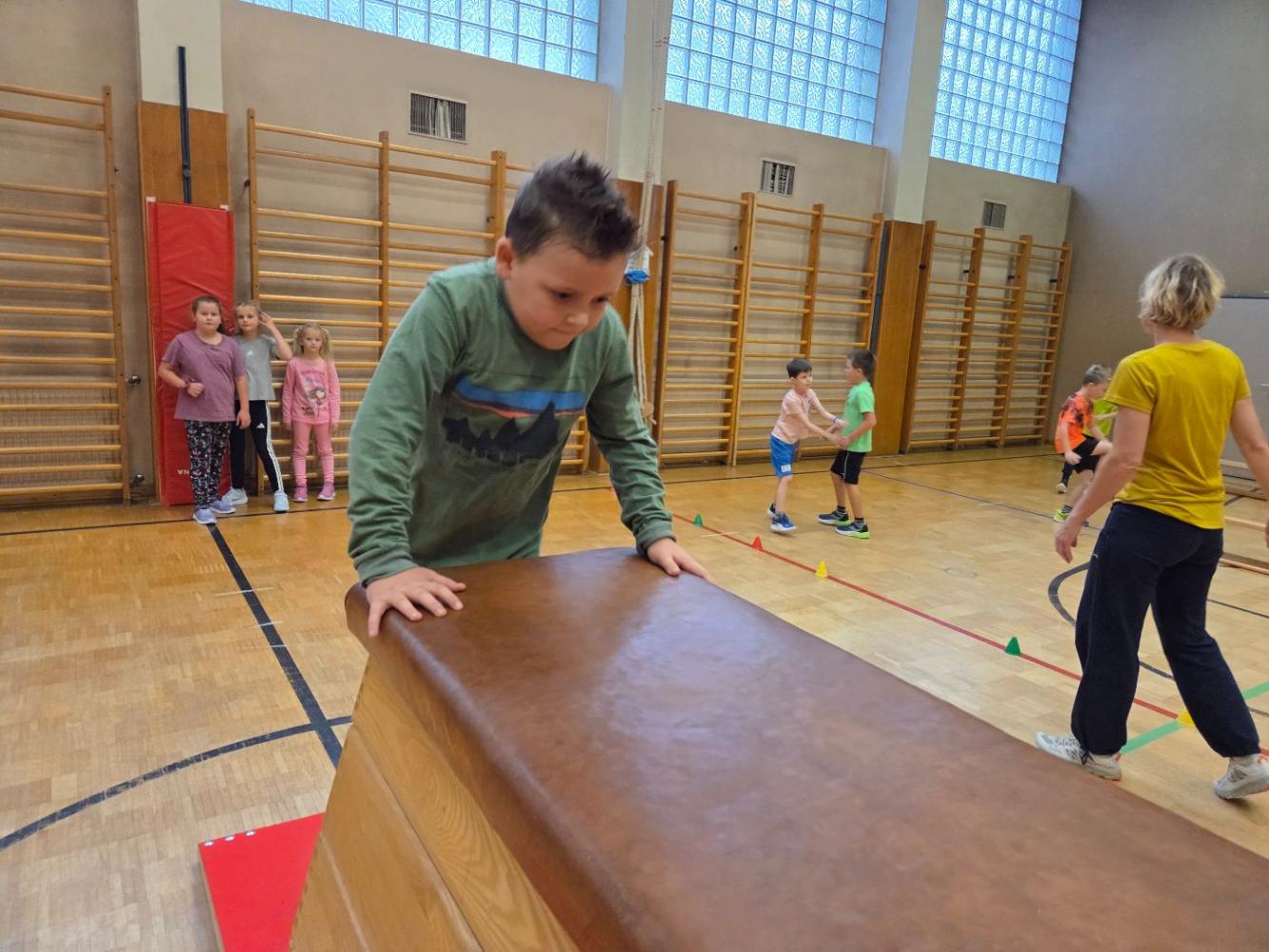 Turnen mit Rebekka Egger von Andrea Lankmair 11. November 2025 2b Die Kinder durften wieder zwei spannende Turneinheiten mit Rebekka Egger im Turnsaal verbringen.