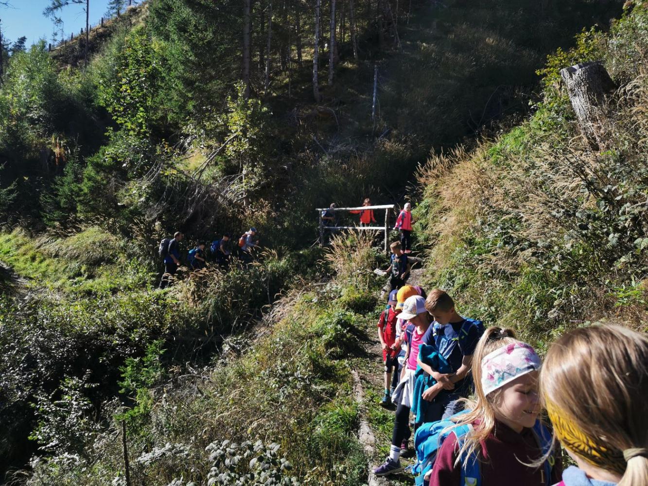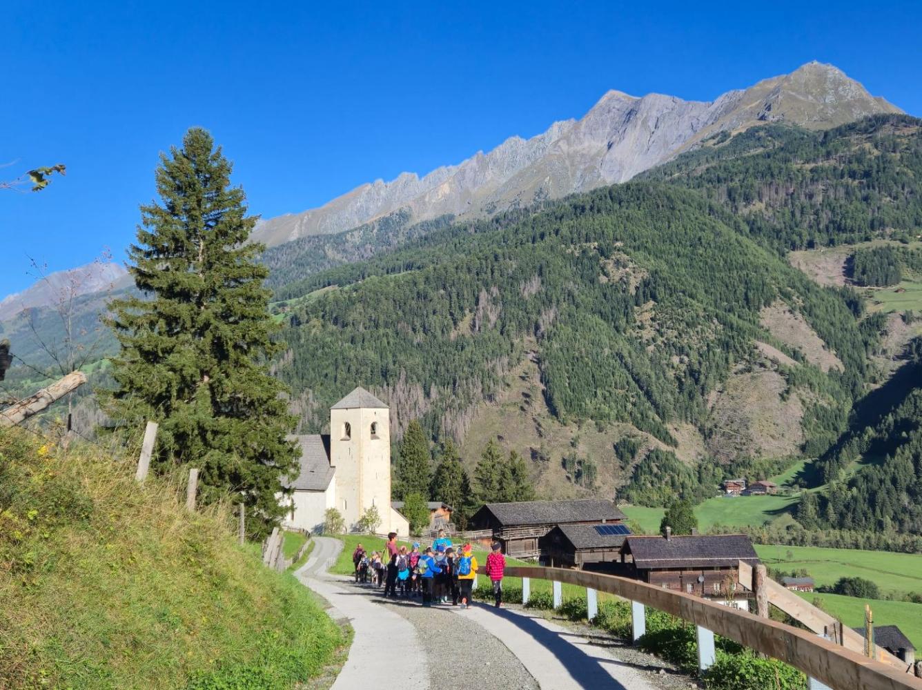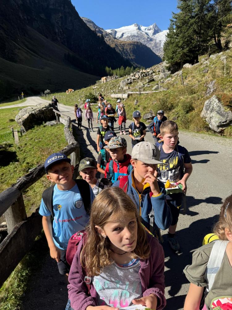 Wandertag von Andrea Lankmair 06. Oktober 2025 1a 1b 2a 2b 3a 3b 4a 4b Am 18. September fand unser erster Wandertag bei Traumwetter statt. Die 1. Klassen wanderten zum Nikolauskirchlein, die 2. Klassen über den Hildenweg nach Seblas, die 3. Klassen auf dem Thiemeweg und die 4. Klassen ins Gschlösstal.