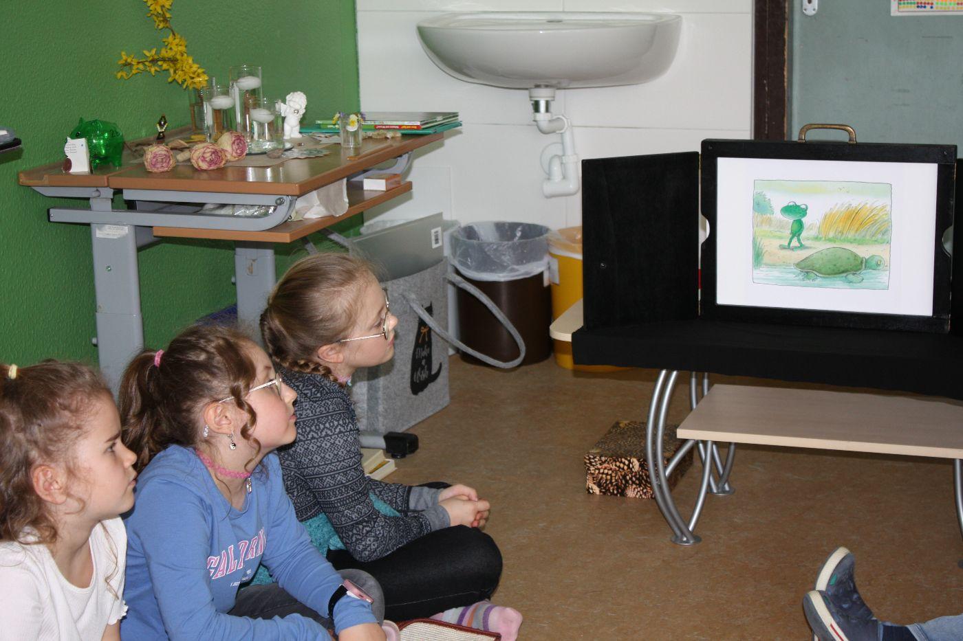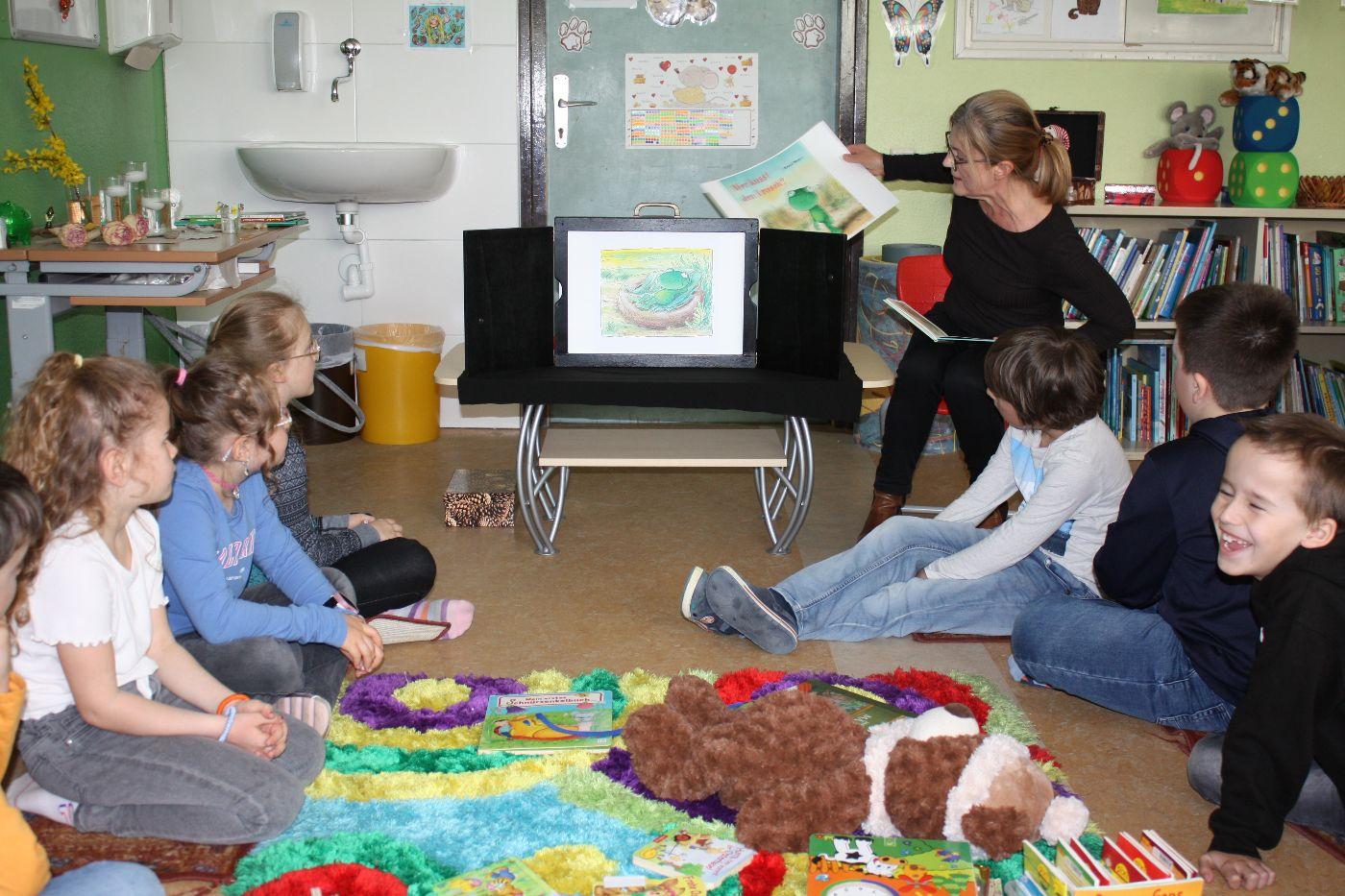 Erwin Mosers liebevoll erzählte Geschichte „Wer küsst den Frosch?“ wurde uns von Lesepatin Ingrid Marinelli vorgelesen. Danke, liebe Ingrid, für diese zauberhafte und feine Reise ins Geschichtenland. Unsere selbst gestalteten Lesezeichen werden uns ewig daran erinnern.