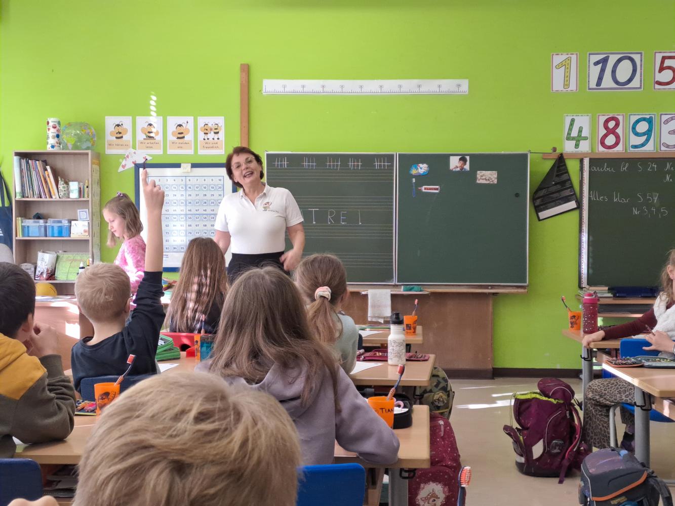 Zahngesundheitsvorsorge von Sigrun Haidenberger 05. Februar 2025 2b Die Kinder der 1b lernten einiges über die richtige Zahnpflege und gesunde Ernährung.